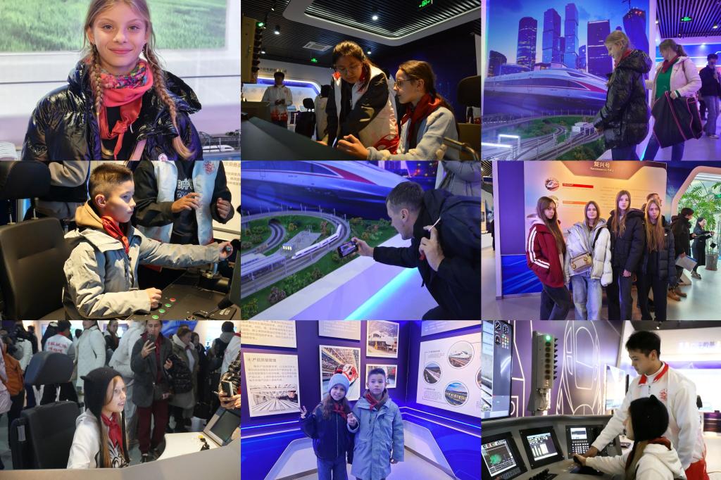活动中,俄罗斯青少年代表团一行走进吉林铁路科普馆,共同感受中国铁路发展历程、先进技术和未来愿景,俄罗斯代表团的青少年们对中国高铁的快速发展和科技创新成果表示由衷赞叹。