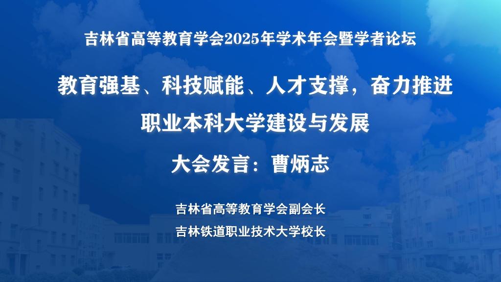 校长曹炳志以“教育强基 科技驱动 人才支撑 奋力推进职业本科大学建设与发展”为题进行了主旨发言。他重点从重构从“能工巧匠”到“大国工匠”的职业本科人才培养体系、强化服务产业升级应用与创新的科研支撑、厚植新时代铁路特色传承的文化根基等方面介绍了学校在教育科技人才一体化发展中的实践探索。校长曹炳志的主旨发言立足铁路行业和吉林省区域经济发展大局,兼具理论高度与实践指导性,系统呈现了学校服务吉林省高等教育高质量发展的具体举措,受到了省教育厅领导、省高等教育学会及各高校代表的高度认可与充分肯定。