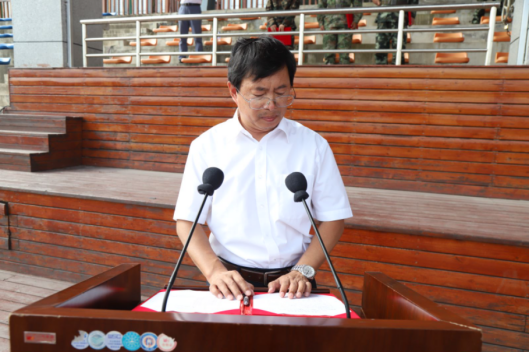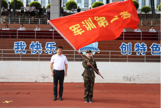 在雄壮的军歌中,学校党委副书记苏建国郑重地向各营授军训旗,我校2023年秋季学生军训正式拉开帷幕,火红的军训旗再次在吉铁院的校园里迎风飘扬。