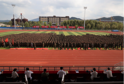 以军训之名,赴青春之约。2023年9月4日14:00,学校2023级学生军训开营仪式在学校体育场举行。学校党委副书记苏建国出席仪式并讲话。永吉县人民武装部政委方明义,学校学生工作处、团委部门负责人,各学院党政主要负责人、党总支副书记、学办主任、2023级学生辅导员,全体军训教官以及2023级全体新生参加开营仪式。仪式由学生工作处处长周环宇主持。