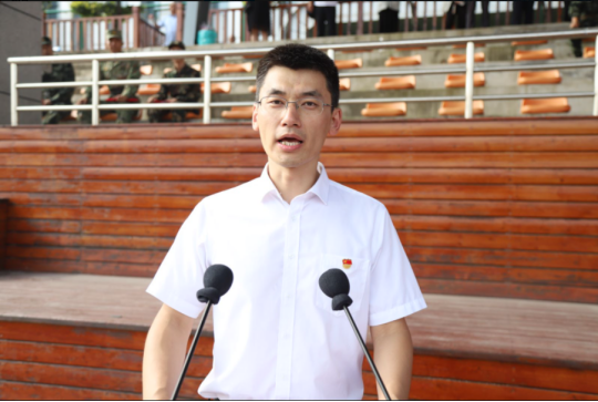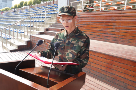 退役军官代表铁道机车车辆学院李长海发言,他表示,要坚决落实学校培养“六铁一全”特质学生的育人理念,使同学们熟练掌握军事理论和军事技能,要时刻保持良好的军人作风,严于律己,科学施训,要落实好安全措施,确保军训平稳有序。军训教官代表铁道机车车辆学院铁道机车运用与维护专业2214班郭家兴、军训学员代表东北亚高铁学院铁道供电技术2303班董懿玉分别发言,誓言以饱满的热情、昂扬的斗志、顽强的作风直面军训,认真落实和完成各项训练任务,以优异的军训成果和良好的精神风貌,激扬青春梦,奋进新征程。