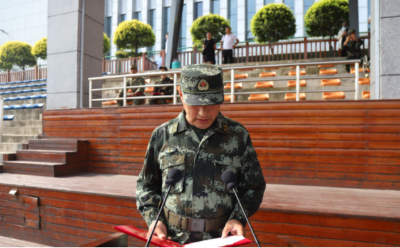 开营仪式在庄严的迎国旗、奏唱国歌仪式中拉开帷幕。参训新生在承训教官的组织下,以挺拔的军姿整齐列队,在国旗下齐唱国歌,认真领会顽强拼搏的奋斗精神、万众一心的团结精神和一往无前的进取精神。升旗仪式过后,学校武装部副部长曹阳宣读军训要求及军训评比细则。