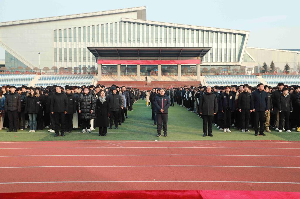 3月9日,学校在体育场举行2026年春季学期升国旗仪式暨“开学第一课”,学校领导班子成员、全校师生共同参加仪式。学校党委学生工作部部长周环宇讲授“开学第一课”,升国旗仪式由党委学生工作部副部长曹阳主持。