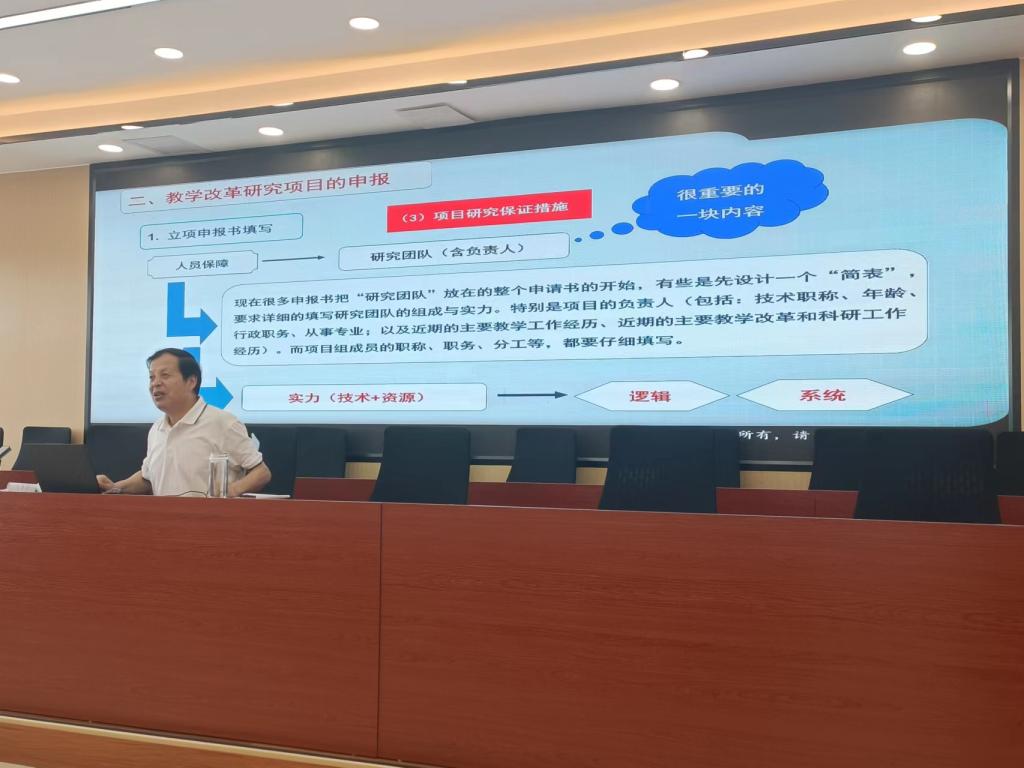 本次科研项目专项培训活动,由专题讲座和一对一辅导两部分活动组成。邀请到国家级教学名师、二级教授、陕西工业职业技术学院机械工程学院原院长田锋社。他在培训中从科研项目的选题、科研项目的申报、科研项目的开题与研究、科研项目的结题四个方面进行了深刻阐述,讲座主题鲜明,重点突出,通过我校教师申报项目的案例解析,结合自身体会,进行了一对一的项目指导,深入浅出地讲解了科研项目设计与提炼,助力我校教师科研水平的提升。