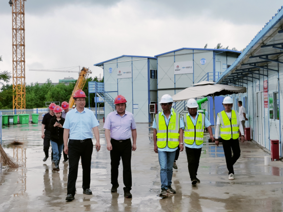 6月27日,党委书记陈煜平,党委副书记、校长曹炳志,副校长、校区建设总指挥李原福到校区建设工地现场检查安全生产工作,校区工程建设副总指挥侯春奇及校区工程建设指挥部相关人员陪同检查。