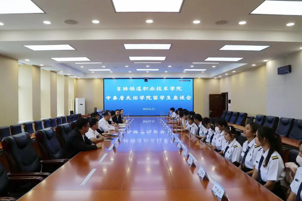 座谈会上,曹炳志用泰国语向全体泰国留学生们表达了亲切的问候,欢迎同学们来到中国,来到吉林,来到吉林铁道职业技术学院求学,他表示,在“一带一路”背景下,学校正朝着更加开放和多元的方向加快发展,多年来,学校高度重视中外合作办学建设,关心关注留学生的教育和发展,希望未来通过一系列活动和举措,着力解决和满足留学生们在教学和生活方面的需求,进一步提升我校留学生教育服务水平。
