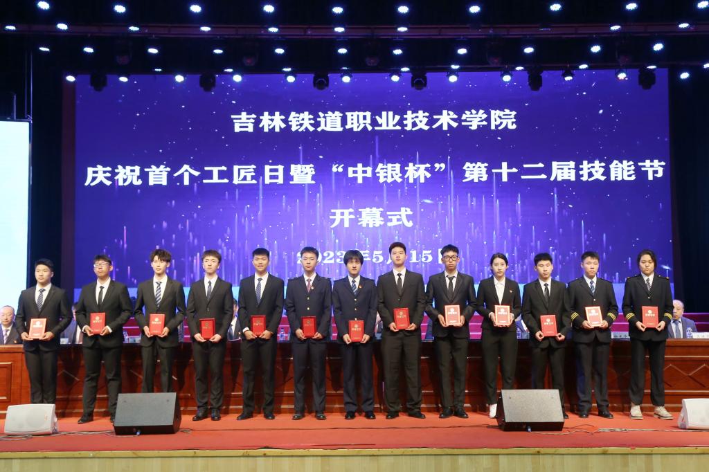 在全党深入开展学习贯彻习近平新时代中国特色社会主义思想主题教育之际,为弘扬劳模精神和工匠精神,营造劳动光荣的社会风尚和精益求精的敬业风气,发挥工匠、高技能人才的帮带、示范作用,激励广大教师踊跃学习,提高技能,强化学生工匠精神和劳动精神的培养。5月15日,学校在活动中心举办庆祝首个工匠日暨“中银杯”第十二届技能节开幕式。中国银行吉林市分行副行长付雷,学校党委副书记、校长曹炳志,纪委书记、监察专员、三级高级监察官孙艳玲,副校长马卫强,副校长李原福出席大会,学校副科级以上干部,部分教职工,2021级和2022级全体学生参加大会,大会由马卫强主持。