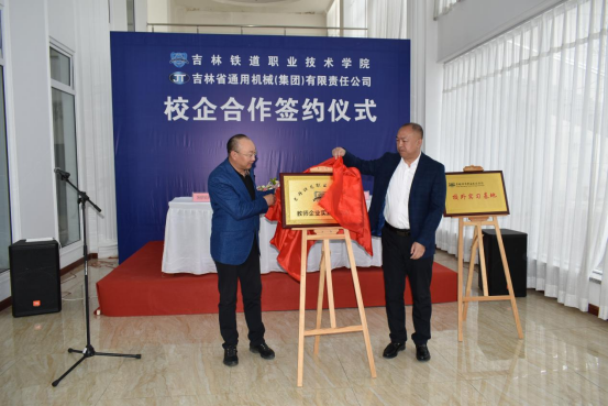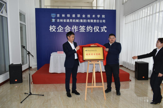 会谈结束后,举行了吉林铁道职业技术学院“校外实习基地”和“教师企业实践流动站”揭牌仪式。