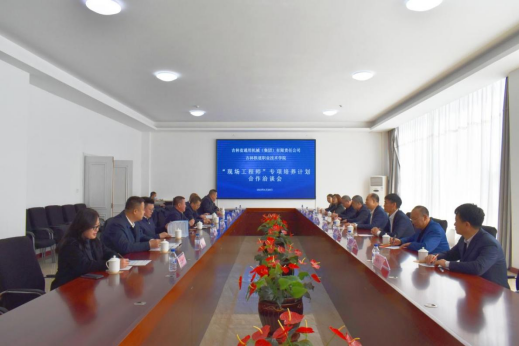 吉林省通用机械(集团)有限责任公司董事长李吉宝对我校领导一行的到访表示欢迎,并陪同参观了企业吉通工业园。李吉宝董事长介绍了企业的发展历程、业务范围以及近些年在校企合作方面所取得的成绩。校长曹炳志代表学校对企业多年来对我校发展给予的大力支持表示感谢,并向企业介绍了学校的总体情况。双方就合作开展第一批“现场工程师”专项培养计划项目进行了深入的探讨,明确了基本合作方向和内容,决定联合申报全国第一批合作培养项目,并签订了合作协议。双方均表示,希望以本次联合申报为契机,在校企协同育人、企业员工培训、技术创新服务、毕业生留吉就业等方面开展深度合作,达到互利共赢,为真正培养出一批具备工匠精神,精操作、懂工艺、会管理、善协作、能创新的现场工程师做出双方的贡献。