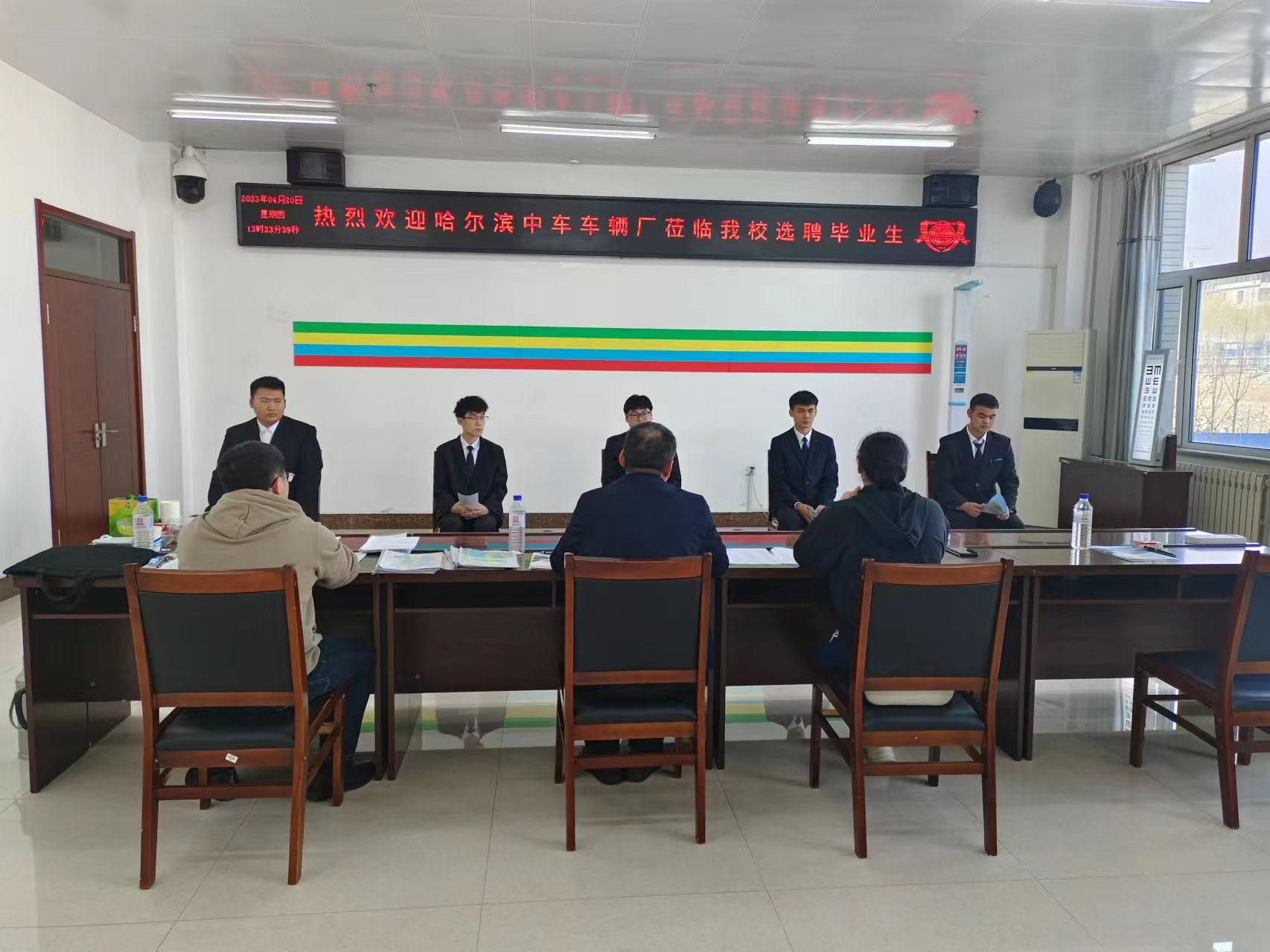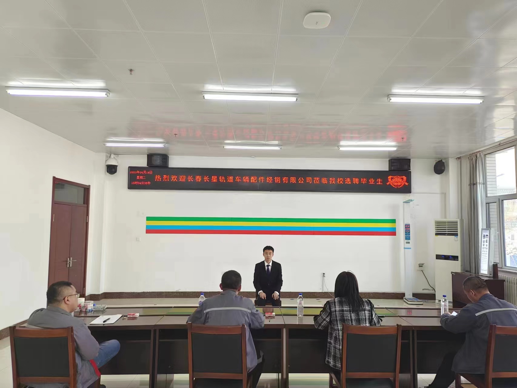 本周共邀请了7家重点招聘单位分别是:中车哈尔滨车辆有限公司、中铁三局运输公司、长春长星轨道车辆配件经销有限公司、海尔集团、浙江舜宇光学科技(集团)有限公司、群创广电股份有限公司、吉林市玖泽文化传媒有限公司等优质企业进校宣讲和面试招聘。各个公司分别介绍了单位的概况和各部门就业需求情况,以及学生关心的未来发展问题给予明确说明,有意向的学生也积极介绍自身优势与求职意愿。