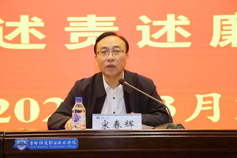 随后,宋春辉从2022年党建工作成绩、存在问题和今年工作思路三方面,做出总结和工作部署。他强调,今年是落实党的二十大精神,奋力迈入“职教本科”新征程的关键之年。我们要牢牢把握社会主义办学方向,以“新气象、新担当、新作为”的吉铁院人精神风貌,坚决做到“两个维护”,坚决落实好党中央、省委各项决策部署,落实好学校“内涵发展、特色发展、安全发展、和谐发展”的发展战略。为实现我校顺利“升本”,建设“国内一流、国际知名的特色高水平职业技能型大学”而团结奋斗。