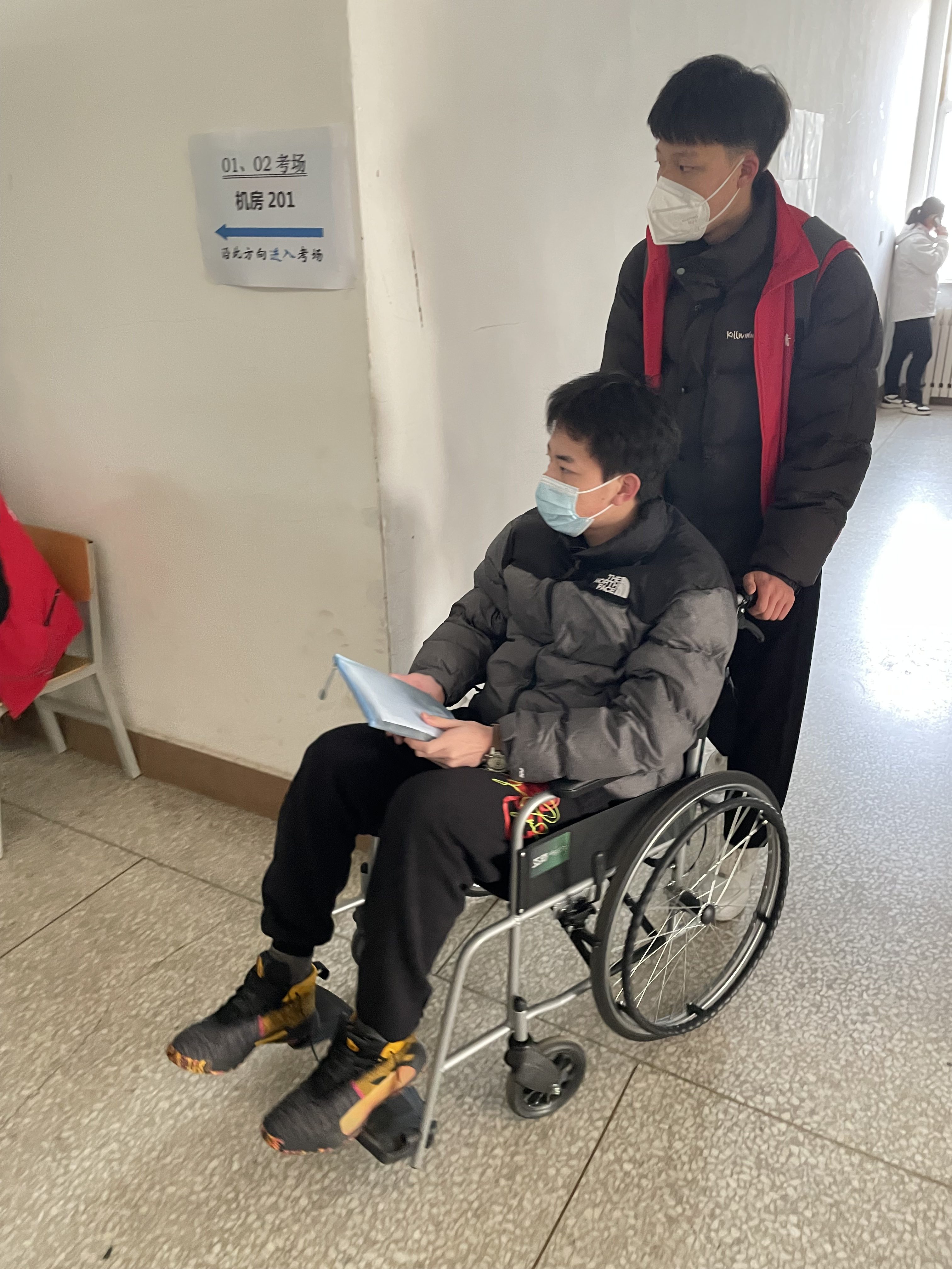 考试当天,100名志愿者身穿红色马甲,无论是室外还是室内都准时上岗,牢记每一条考场路线,每个考场对应楼层和教室门牌,在考生询问时,力求第一时间给出准确答复。有坐轮椅出行困难的学生,志愿者们第一时间伸出手帮助,护送学生顺利快速到达考场。多次为遗落物品的考生寻找物品,送到考生本人手中。