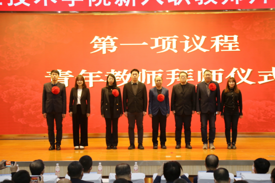 会上,举行了新教师拜师仪式,新教师代表向师傅献花,行拜师礼。随后,新教师进行入职宣誓,高铁综合技术学院党总支书记莫建国作为导师代表发言,马克思主义学院新教师孙妍作为新教师代表发言。