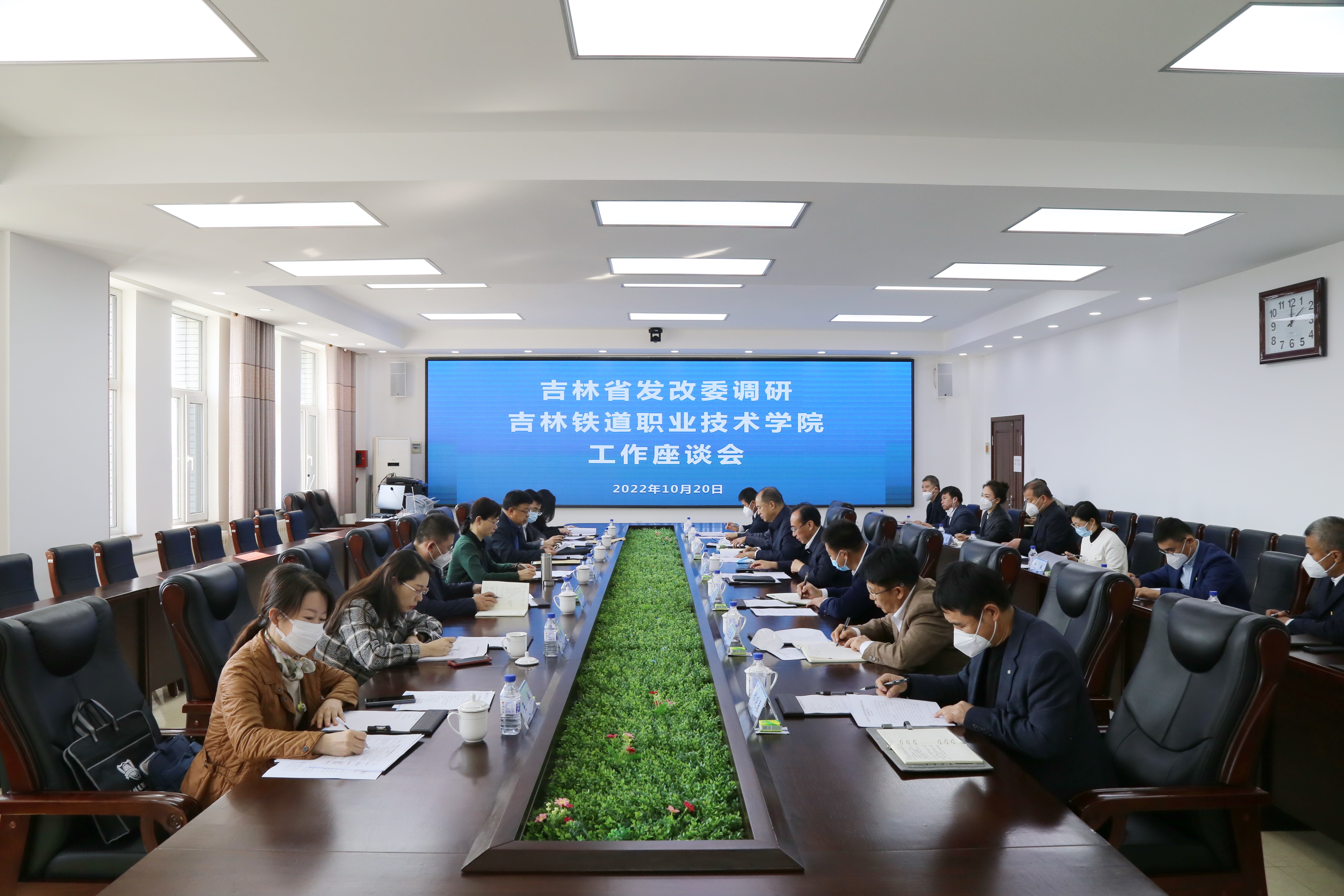 10月20日上午,为落实全省职业教育大会精神,加快推进职业教育高质量发展,助力我校申办职教本科大学,吉林省发改委党组成员、副主任刘日昊一行到我校调研指导工作。陪同来访的有省发改委社会处处长温晓天、投资处副处长张啸寒、铁道处副处长刘仁军、高技术处二级调研员王洪;省教育厅职业与成人教育处处长杜颗亮,副处长赵新雅。学校党委书记宋春辉、校长曹炳志、副校长李欣、副校长李原福和学校相关部门负责人参加会议。