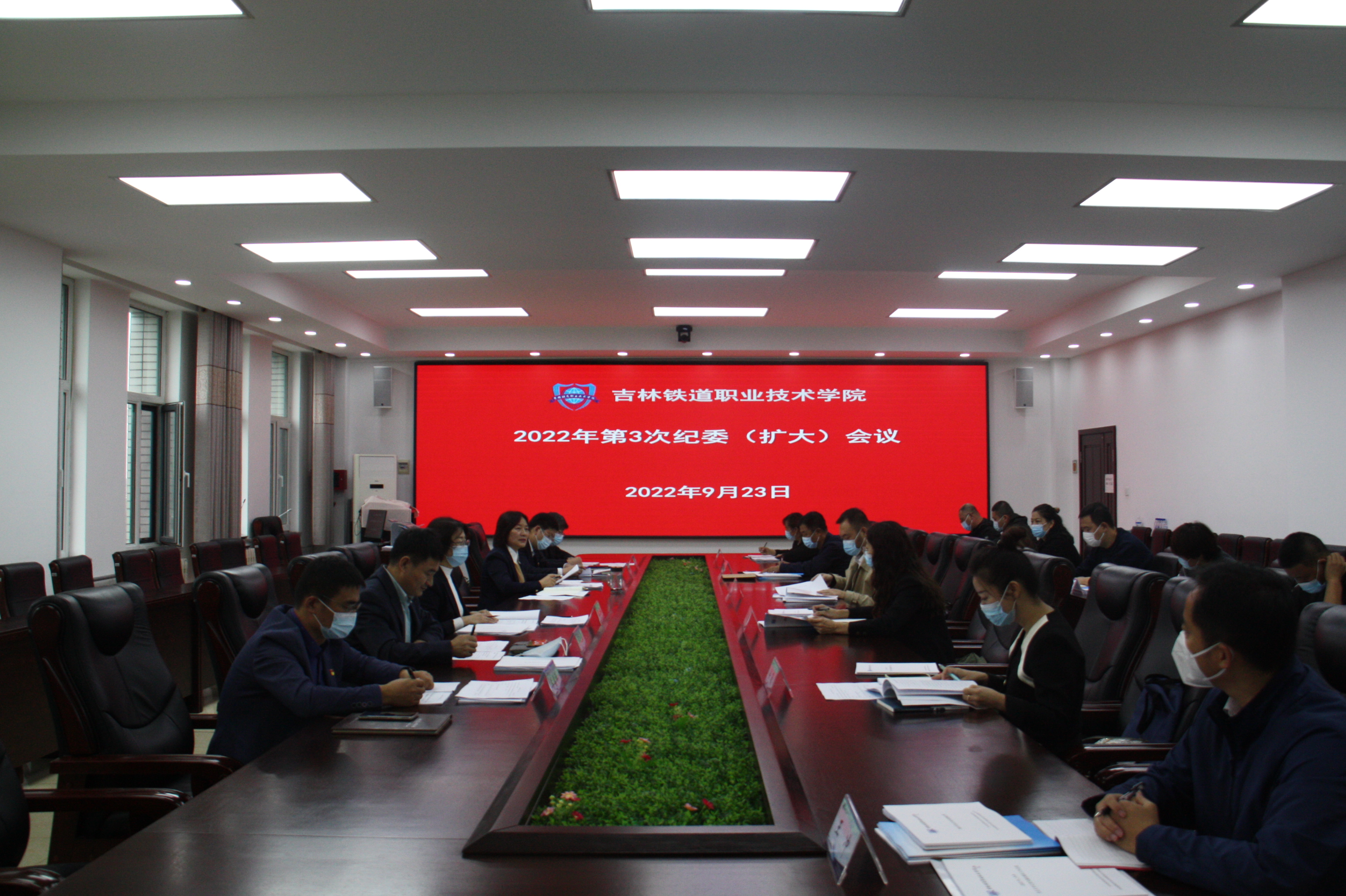 秋季开学伊始,为总结部署学校纪检监察工作,推进全面从严治党向基层延伸,全力保障秋季开学疫情防控工作,以实际行动迎接党的二十大胜利召开,2022年9月23日,学校在行政楼第二会议室召开2022年第3次纪委(扩大)会议,在校纪委委员孙艳玲、高丽娴、刘锡权、郝延春、段金辉、李善峰和各党总支纪检委员、专职纪检监察干部参加会议。会议由纪委书记、监察专员孙艳玲主持。