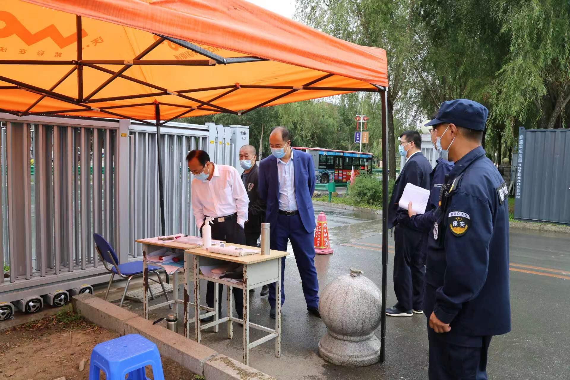 | 学校领导在学校东门对进出校园施工人员车辆及防疫工作进行检查 |