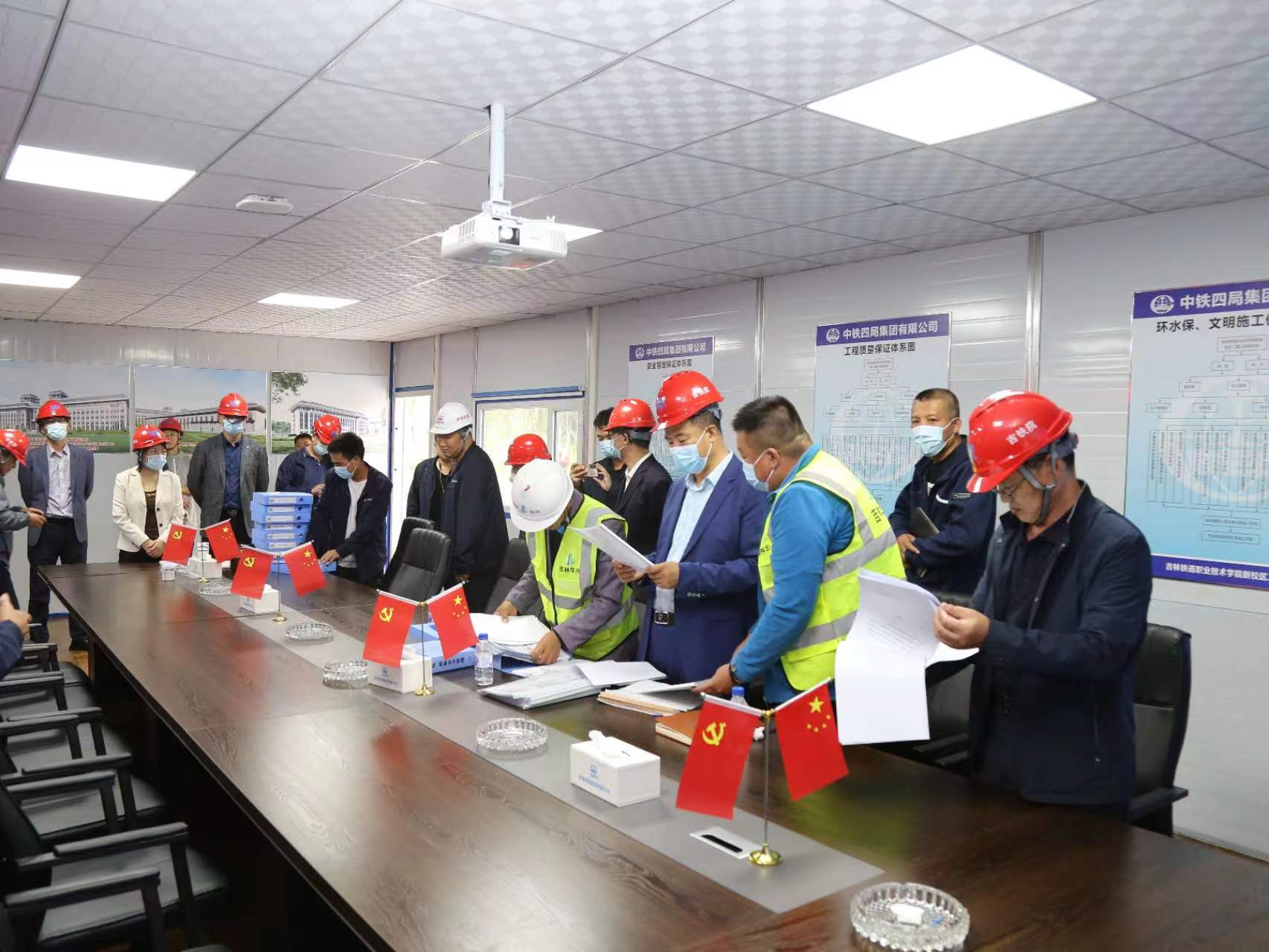 | 学校领导在中铁四局指挥部对内业进行安全检查 |
