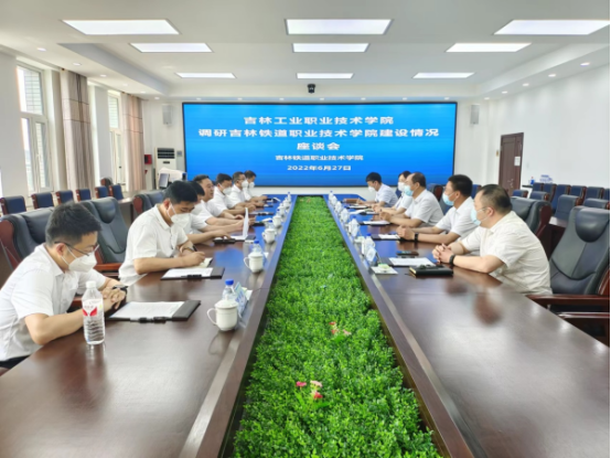 6月27日上午,吉林工业职业技术学院党委书记朱永忠,党委副书记、校长宋立军,党委委员、副校长许跃,党委委员、副校长高兴泉,新校区建设办公室主任王晓斌,网络信息中心主任孟范立,办公室主任于志强一行7人到我校针对学校信息化建设、新校区建设开展调研交流。我校党委副书记、校长曹炳志,纪委书记、监察专员孙艳玲,党委委员、副校长李欣,党委委员、副校长马卫强,信息化办公室主任姜彬峰,校区建设指挥部副总指挥赵明陪同调研并参加座谈会。