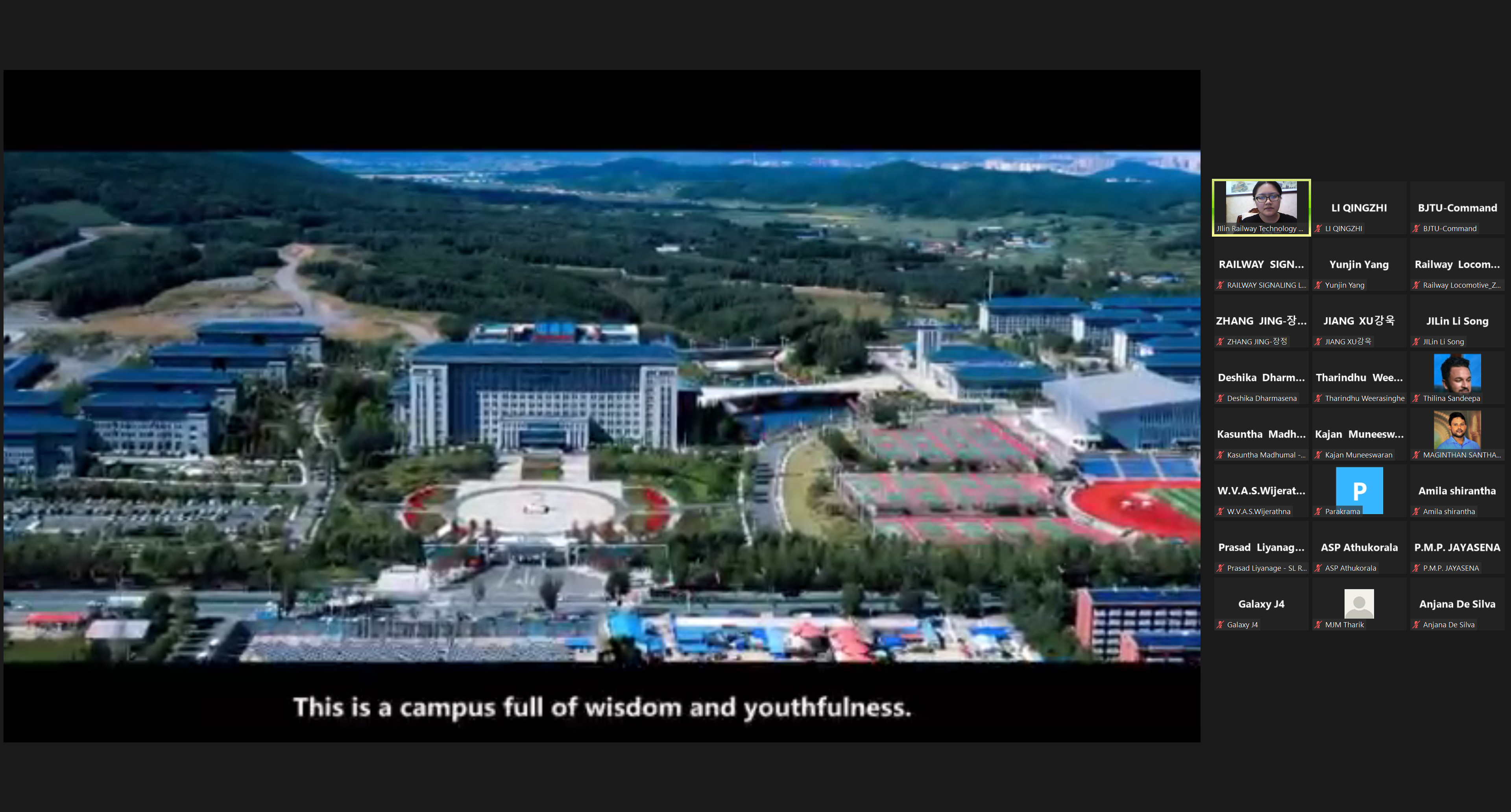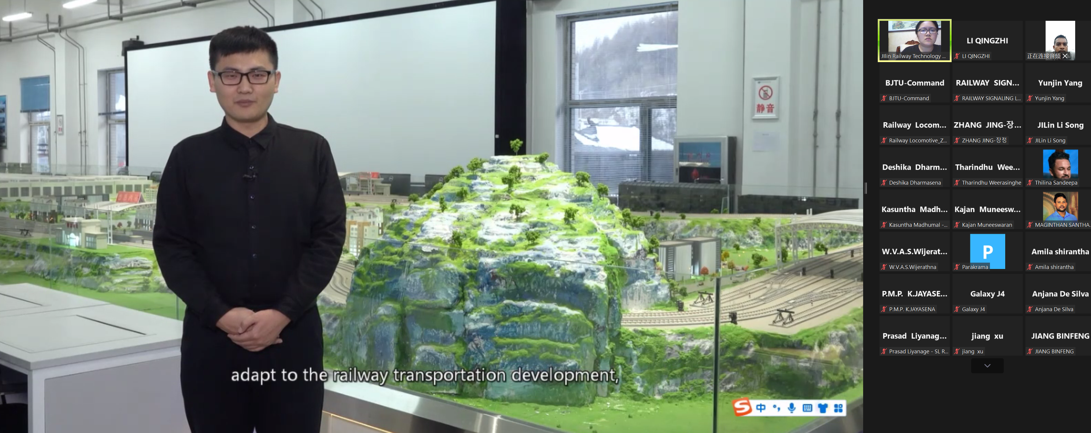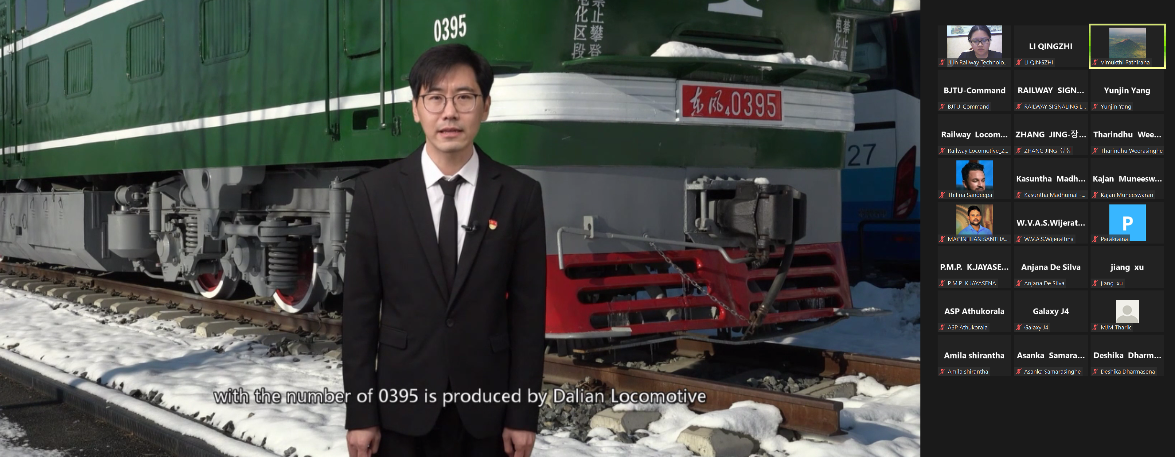 我校铁道运输学院姜旭、电气工程学院李松、高铁综合技术学院刘烨、东北亚高铁学院张晶、铁道工程学院杨昀锦、铁道机车学院赵猛等六名专业教师就机、车、供、电、辆实训设备及实训基地等内容进行了线上英文专业讲解及答疑。通过直播教学、交流研讨及“云参观”,让研修班学员从多方面、多角度了解中国高铁技术和装备,感受中国铁路的高速发展。
