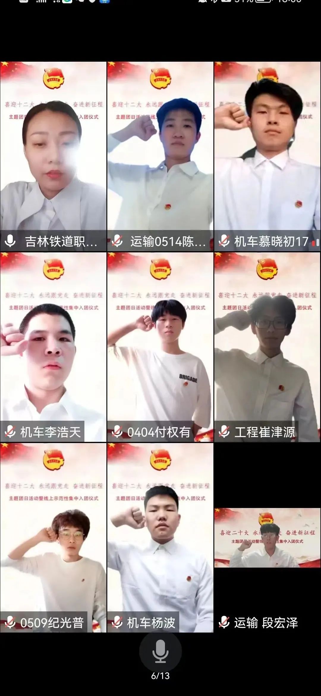 5月4日17:30,校团委举办了“喜迎二十大永远跟党走 奋进新征程”2022年上半年新团员入团线上仪式。副校长李欣出席会议,团委副书记孙旭主持会议,各学院团委书记及相关工作负责人、分院团委副书记、学生会主席团成员、各社团主要负责人、团支部书记代表和70名新团员参加了仪式。