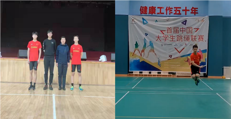 参加中国大学生跳绳联赛前,体育部面向全校学生选拔运动员,经过两轮选拔,最终王新宇同学和黄华淼同学入选我校跳绳队。