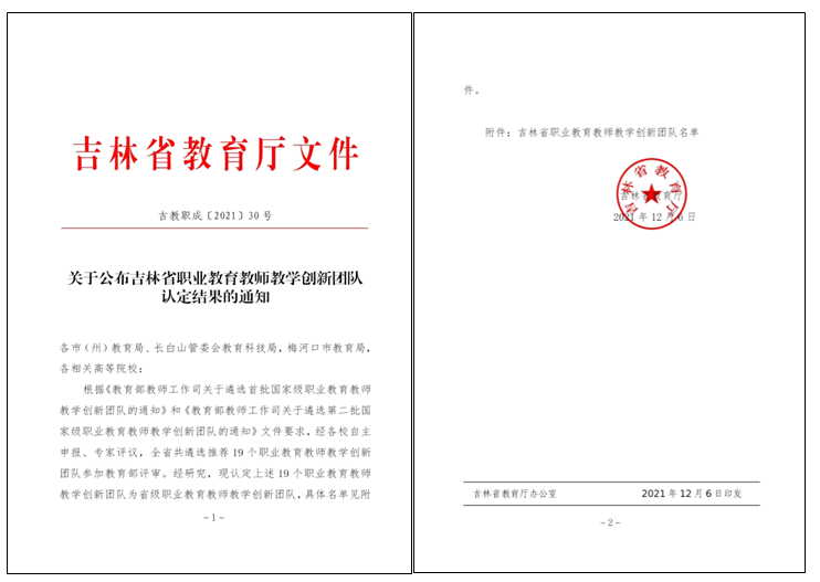 本次获批“吉林省职业教育教师创新团队”,对于我校开展高层次、急需紧缺和骨干专业技术人员的培养培训工作,不断探索完善产学研相结合的职业教育模式具有积极意义,也为后续我校申办职业本科教育奠定了良好的基础。