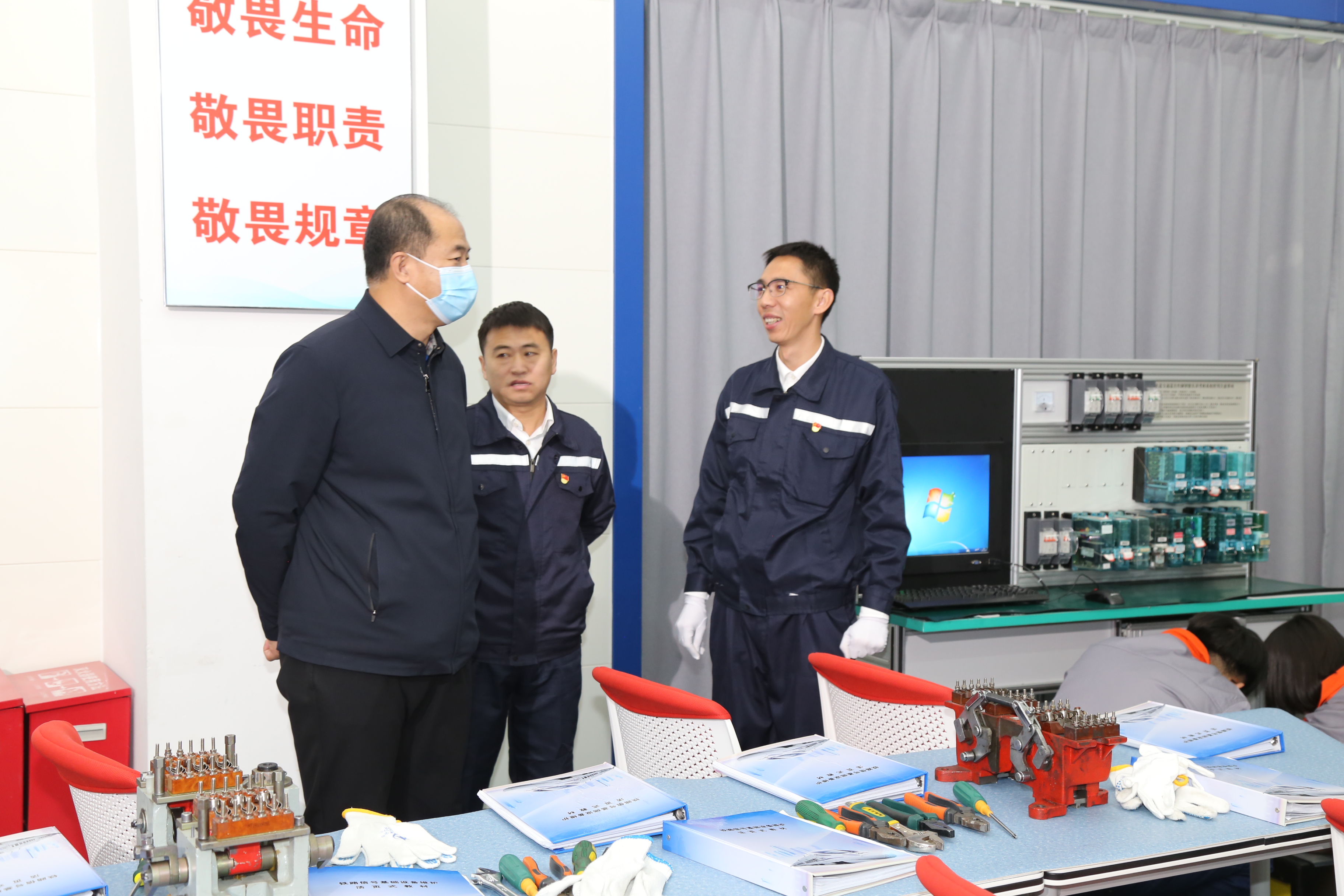 在训练现场,校领导一行与参赛教师进行深入交流,详细了解了参赛团队在视频拍摄、专家意见消化、材料准备等方面的情况,高度赞扬参赛团队的准备工作,并要求有关部门各负其责、通力协作,为参赛团队提供坚实的后勤保障。校领导鼓励参赛教师把全国职业院校技能大赛教学能力比赛作为展现学校风采的重要窗口,通过比赛全面引领提升学校教育教学质量,同时期望备赛团队敢于挑战、顽强拼搏,调整好心态,展现吉铁院师生的意志品质,为学校建设贡献标志性成果。
