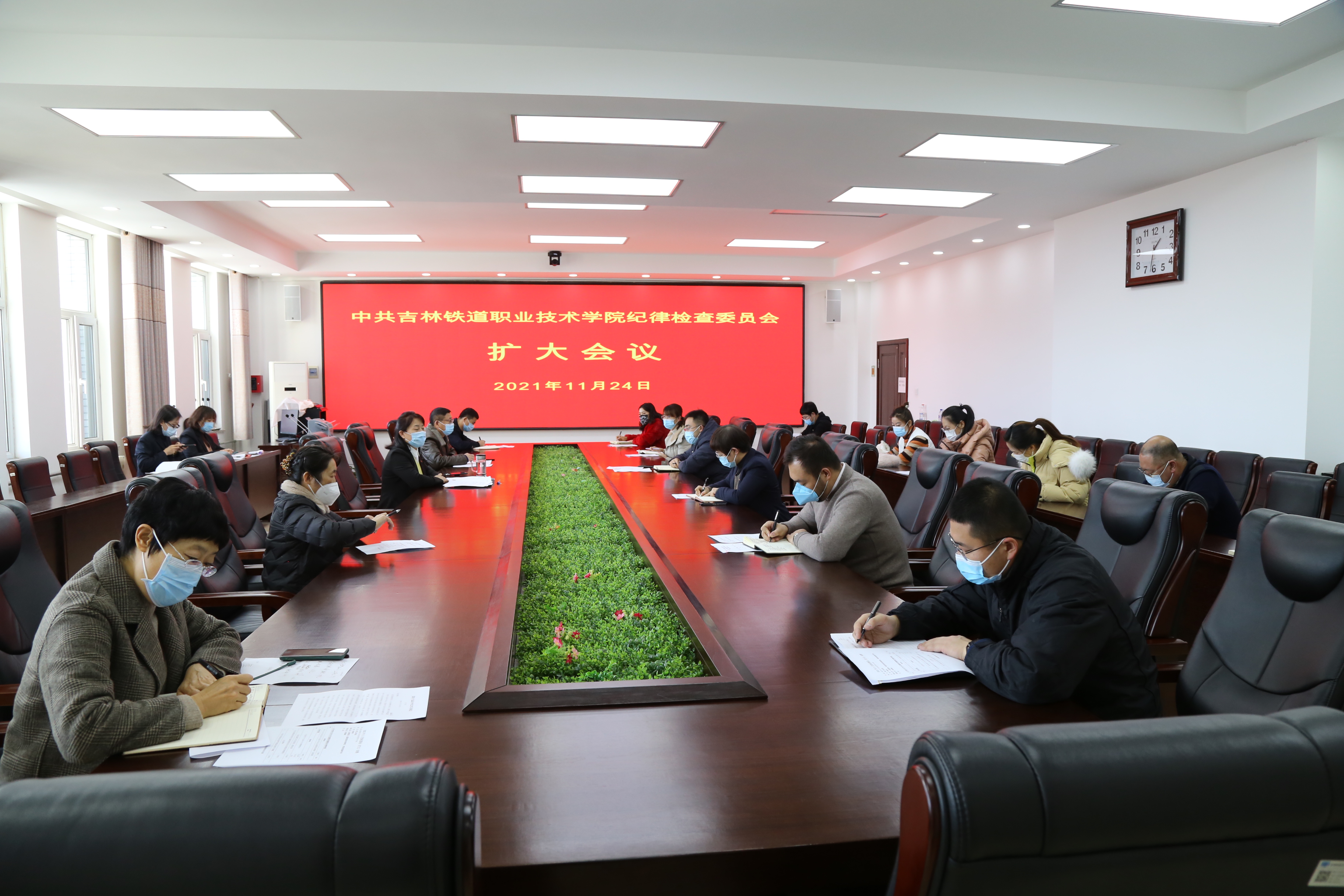 为深入学习宣传贯彻习近平新时代中国特色社会主义思想,贯彻落实学校党委关于迅速掀起学习宣传贯彻十九届六中全会精神热潮和严明换届纪律工作要求。2021年11月24日下午,学校纪委召开11月份纪检监察干部扩大会议专题学习党的十九届六中全会精神。学校纪委委员、专职纪检监察干部、各党总支(直属党支部)纪检委员等21人参加会议,会议由学校纪委书记、监察专员孙艳玲主持。