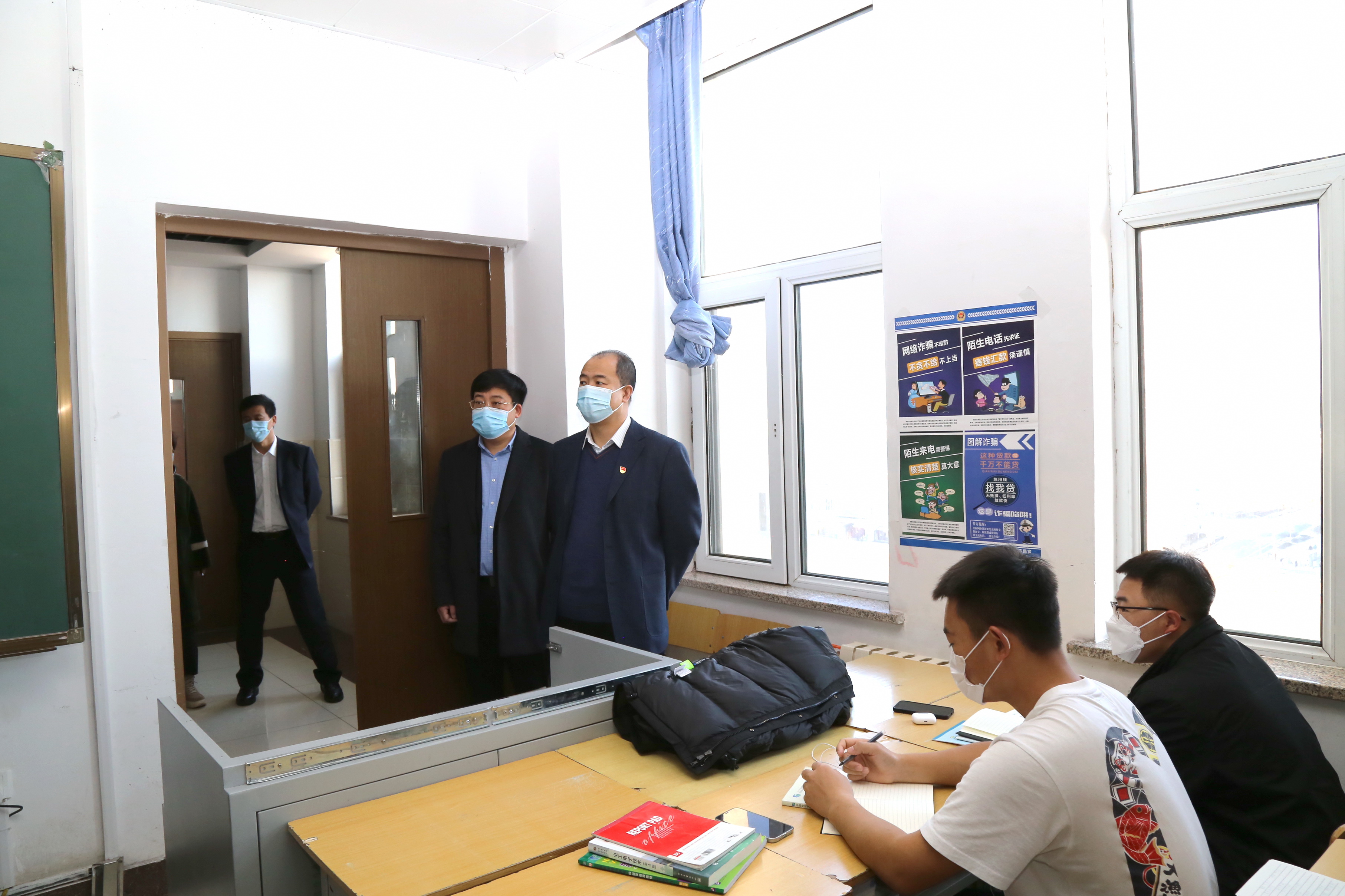 根据疫情形势,学校做出了教学调整,实行线上和线下教学方式,11月14日,学校党委书记宋春辉,校长曹炳志,党委副书记苏建国,副校长李欣以及纪委、教务处、学生处、信息化中心,各教学分院及教学单位负责人一同检查。