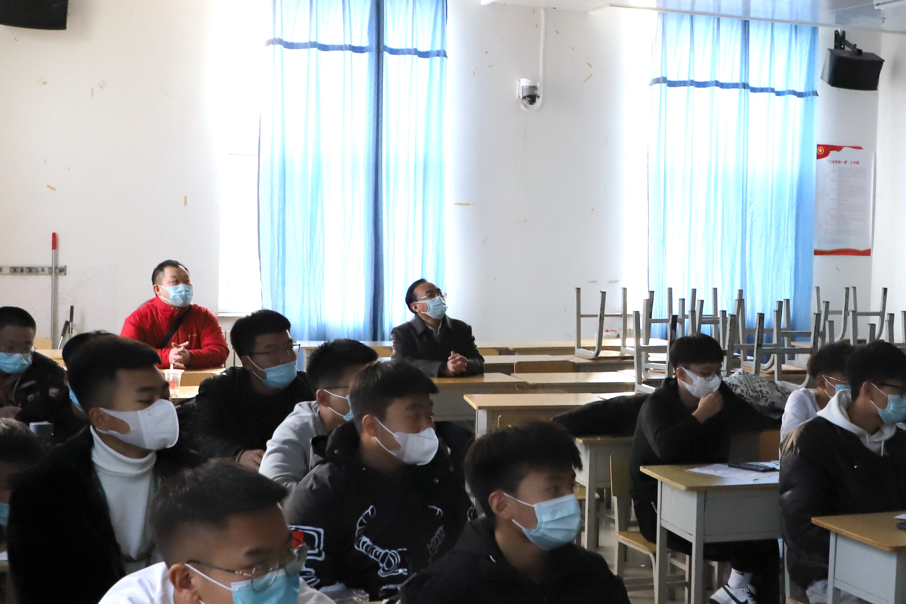 教学调整后,共有141门课程实行线上直播形式教学,教师居家授课,学生在教室集中上课。相关职能部门各司其职,各教学单位积极落实,授课教师做好课前教学准备、课堂教学组织、课后学生辅导,确保教学秩序正常,教学运行稳定。在检查中,校领导及各负责人查看了线上直播课程的教学实施和学生在班级集中听课的教学秩序,并对教室的通风消毒、学生上课佩戴口罩等细节做了要求。