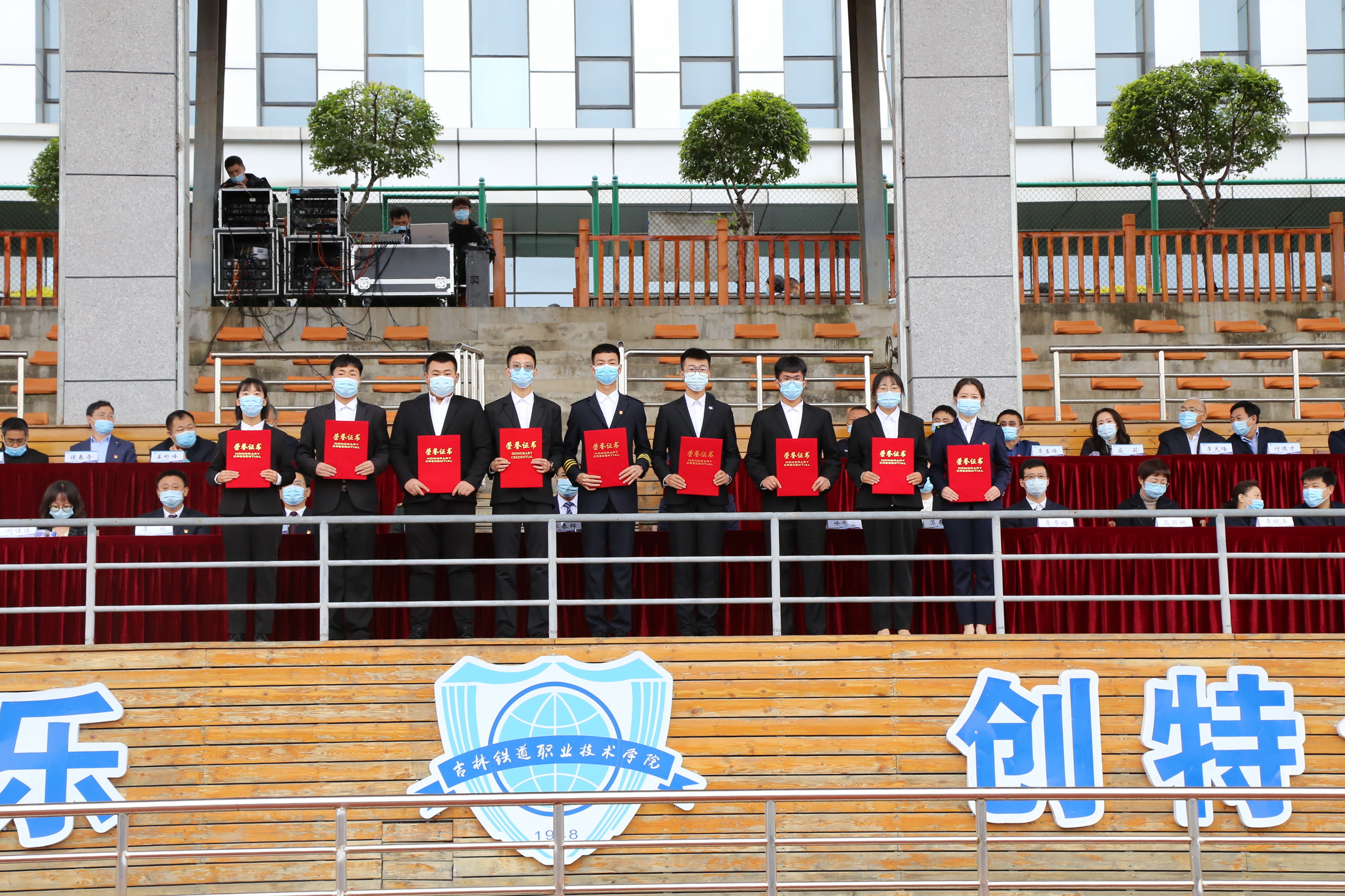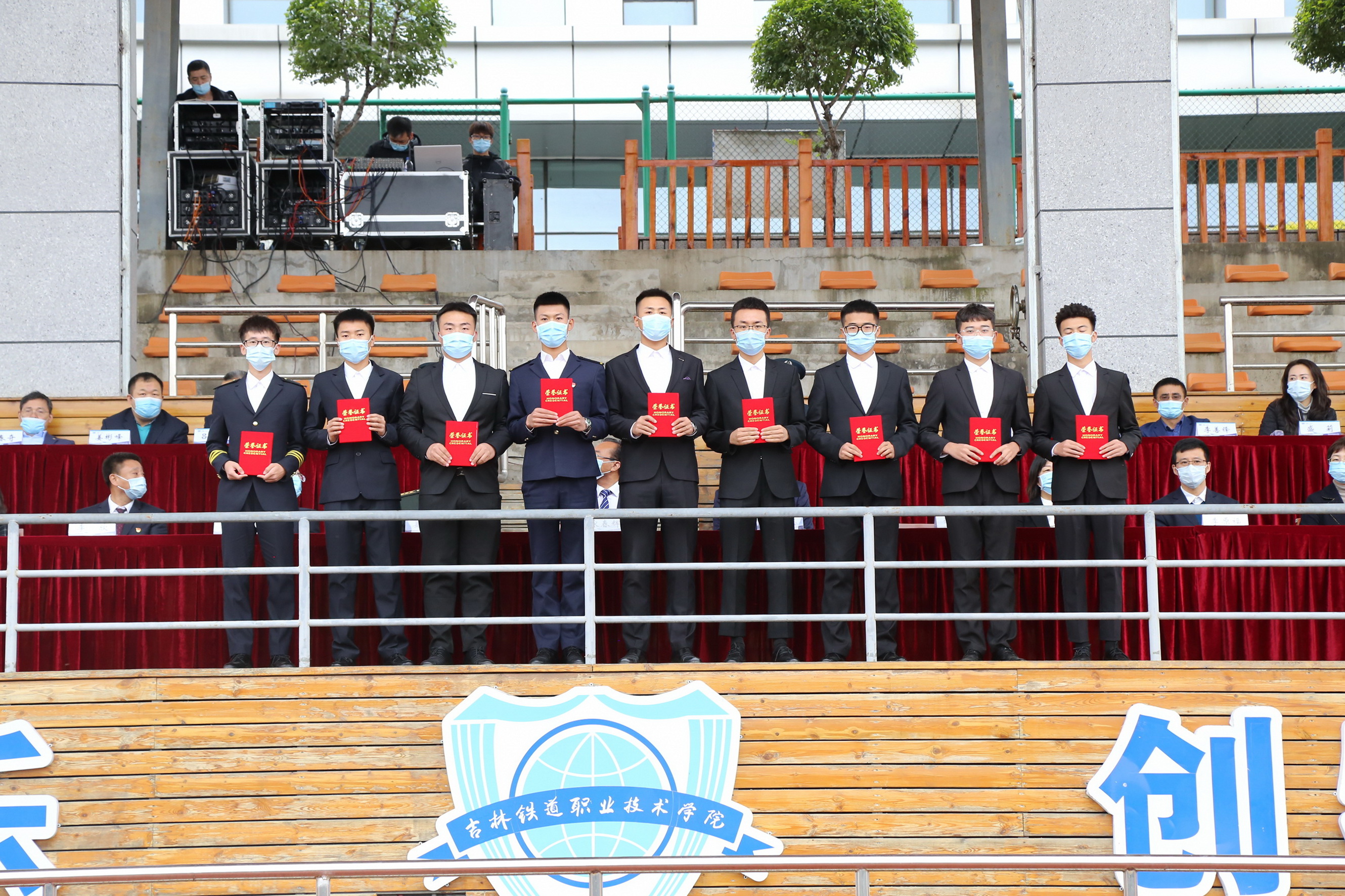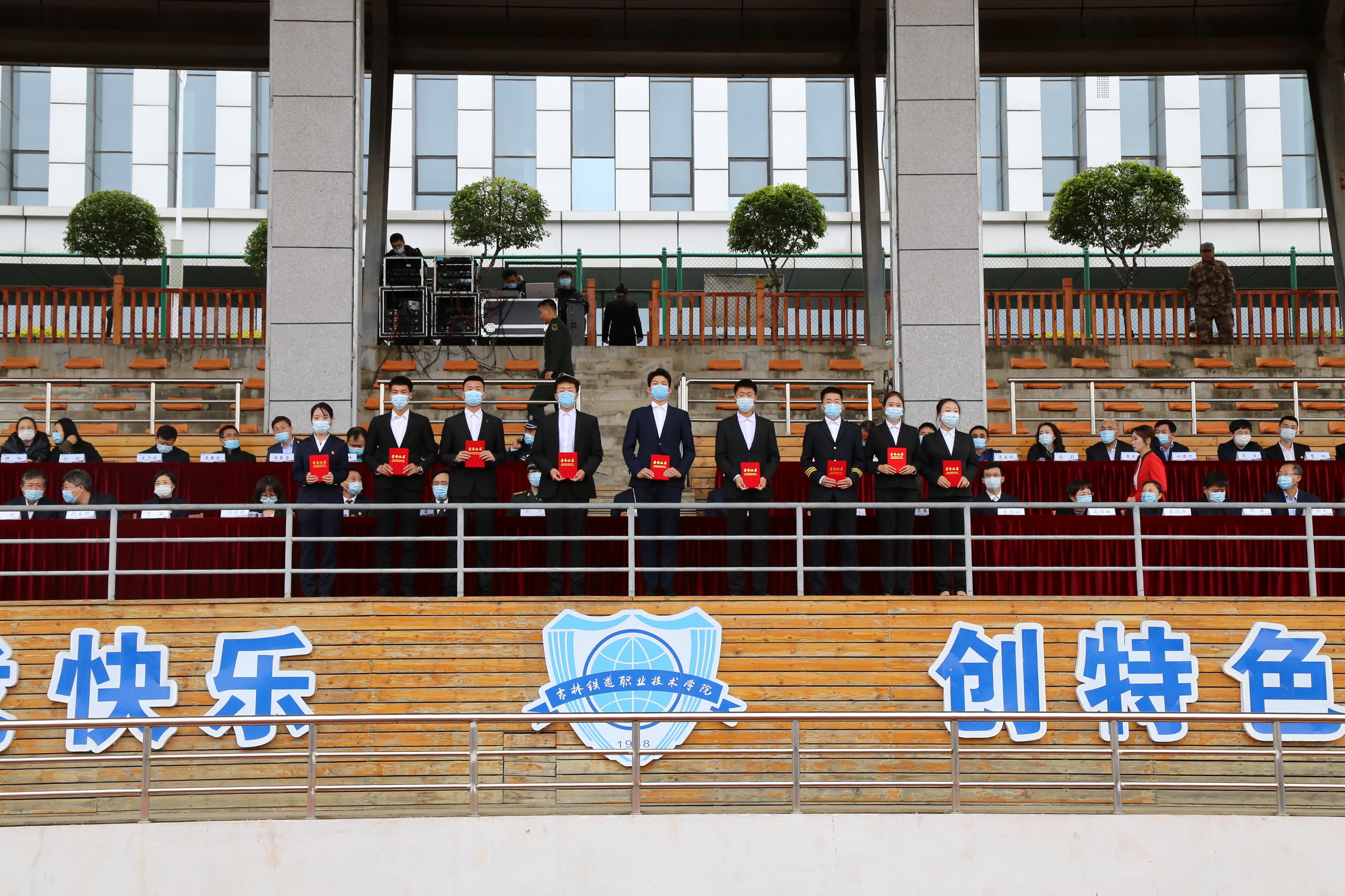 在典礼最后,学校2021级全体新生在城市轨道交通学院城市轨道交通车辆技术1901班吕霖同学领誓下进行了入学宣誓仪式。吉铁院学子庄严宣誓:“今天,我成为一名光荣的吉铁院学生,我将谨记‘明德,弘业’之校训,勤学修德、明辨笃实,志存高远、心系家国,诚信立身、技能成业,弘扬铁院精神,成就出彩人生。今天我为吉铁院而自豪,明天吉铁院因我而骄傲。”