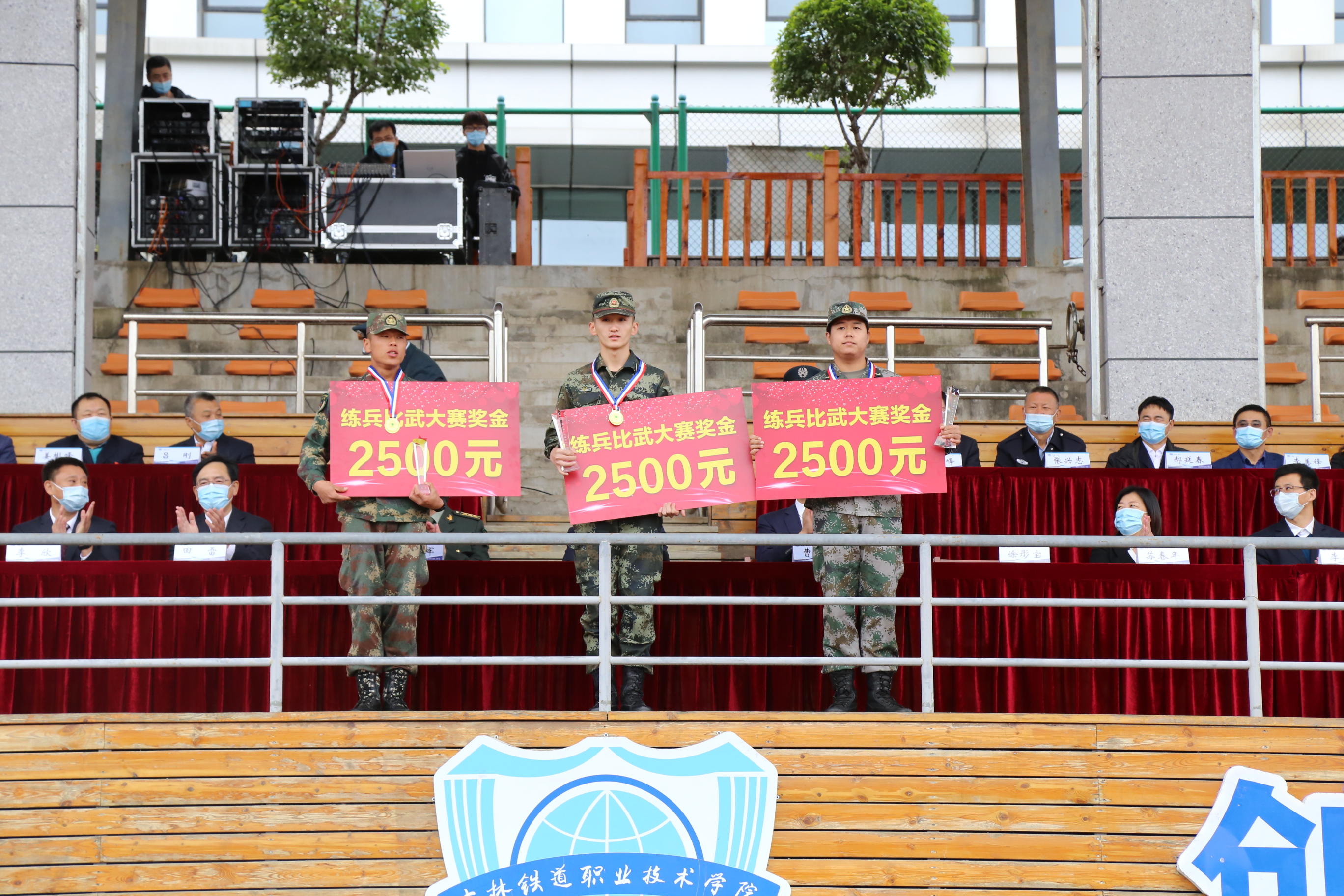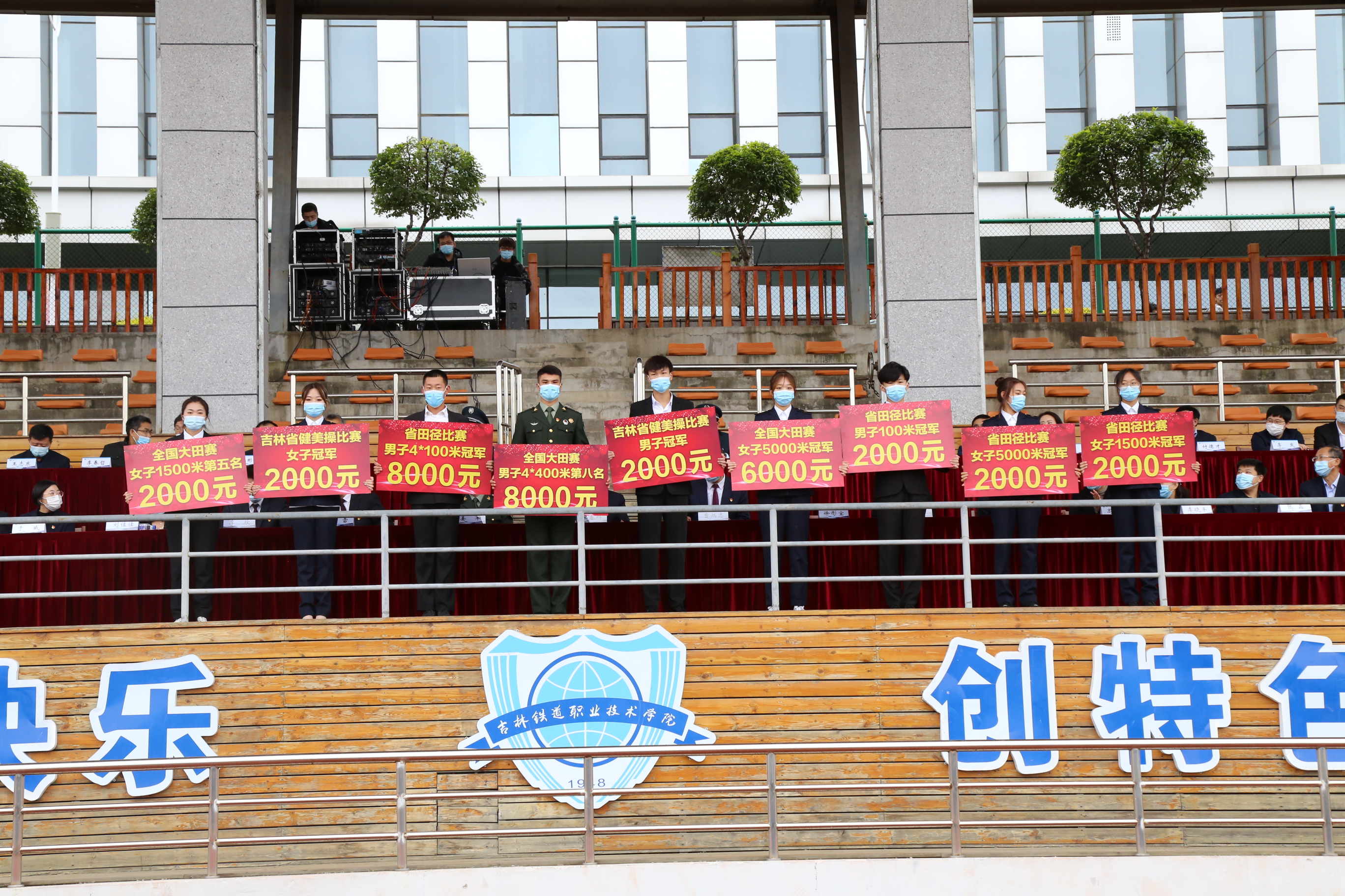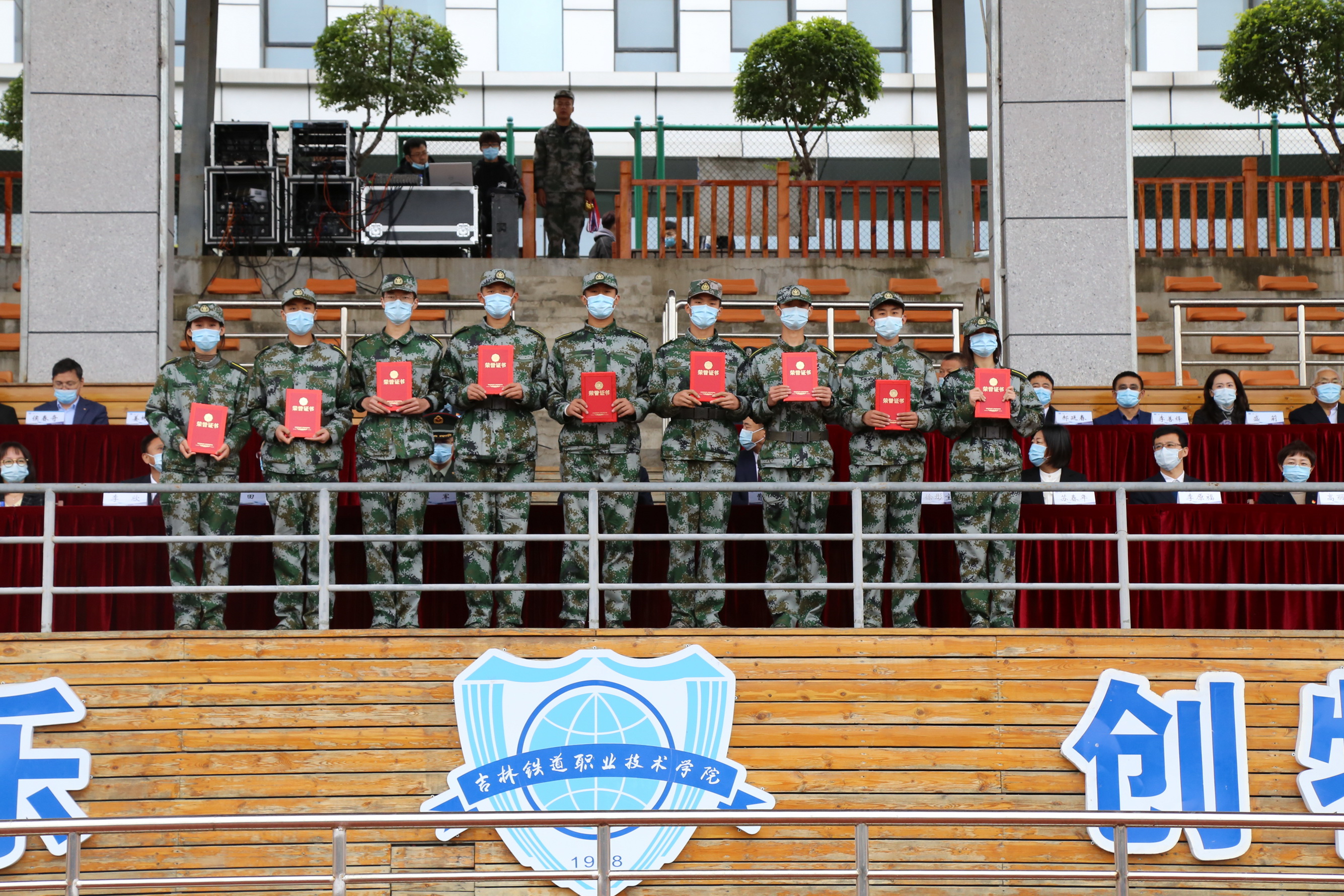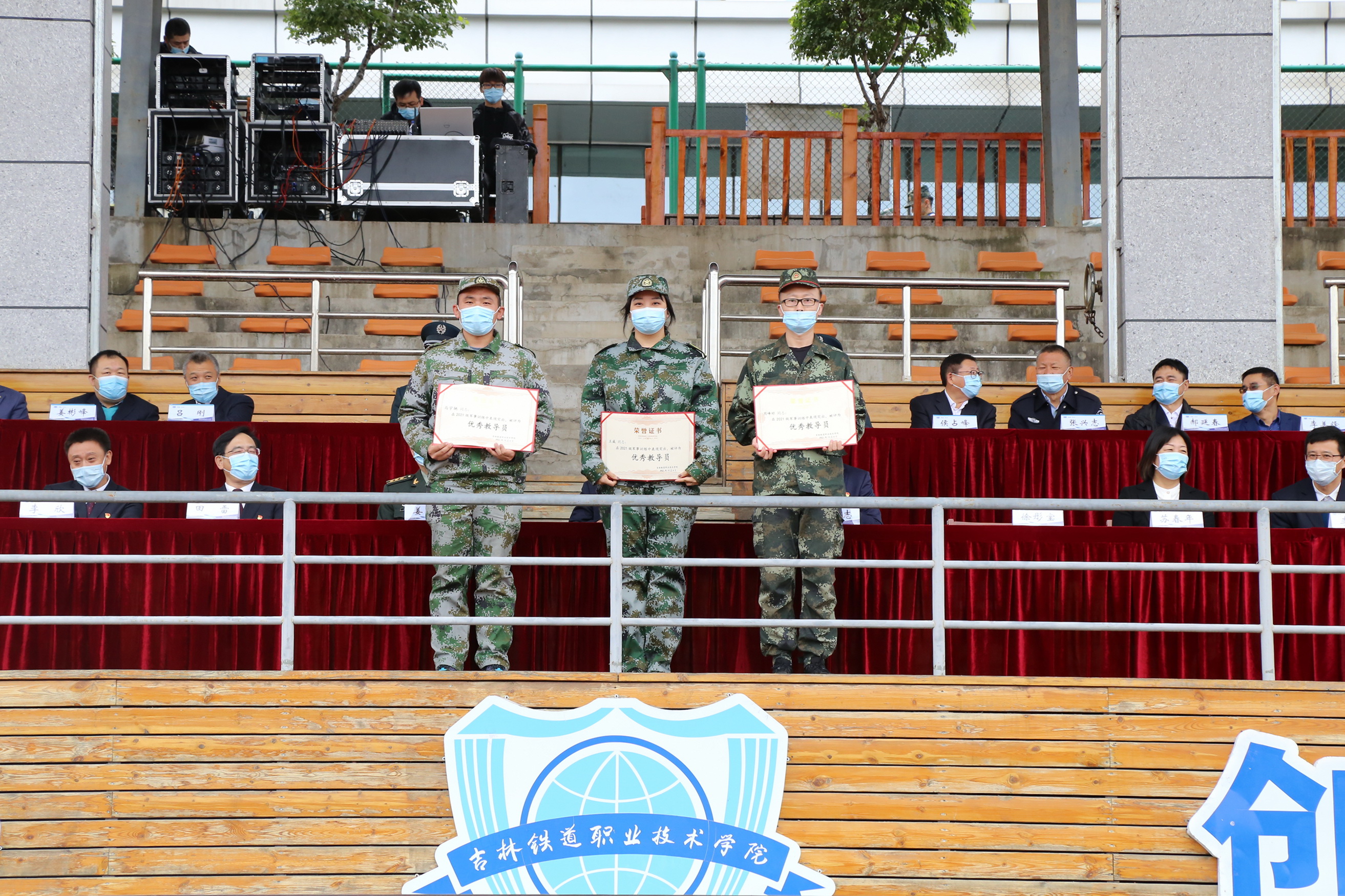 随后,田雷宣读表彰优秀连队、优秀标兵、军被风采大赛获奖者、吉林市第二届群众性练兵比武先进个人、优秀教导员、优秀教官的决定;苏春年宣读表彰国家奖学金、国家励志奖学金、省政府奖学金、2020-2021学年雏鹰奖学金、2020-2021学年雏鹰进步奖学金的决定;李欣宣读表彰2020-2021学年优秀班级、十佳大学生、三好学生标兵、优秀学生干部标兵、全国各类大赛获奖学生、全国各项大学生体育比赛获奖学生的决定。学校领导为获奖的先进集体和优秀个人颁奖。