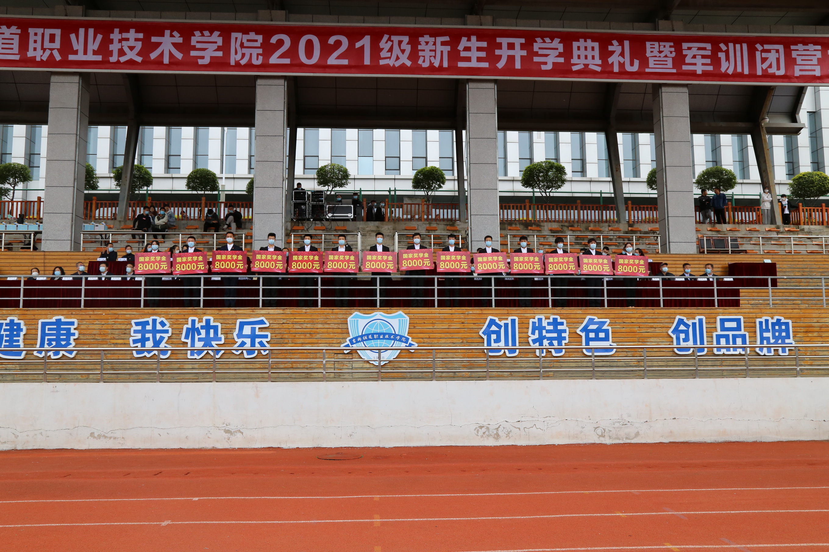 曹炳志在致辞中代表全校教职员工,向刚刚加入学校大家庭、即将开始自己崭新学习生活的2021级新同学表示最热烈的祝贺和欢迎。他指出,吉林铁道职业技术学院是一所有着光荣厚重历史的大学,有着优质教育资源的大学,有着光明发展前景的大学,是一所幸福感爆棚的大学。是一所正在朝着“建设中国特色、世界水平的职业技能型大学”发展目标全速前进的大学。4150名新同学的到来,使在校生达到13511人,历史规模最大,你们相聚在“吉祥天佑,林碧水秀”的北国江城吉林,相聚在朝气蓬勃、欣欣向荣的吉铁院,你们就成为了命运共同体。今后,学院“明德、弘业”的校训,“团结、勤奋、求实、创新”的校风,“励志、善思、崇德、精艺”的学风将成为你们终身信守的精神财富。