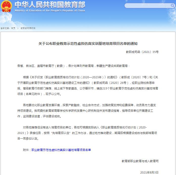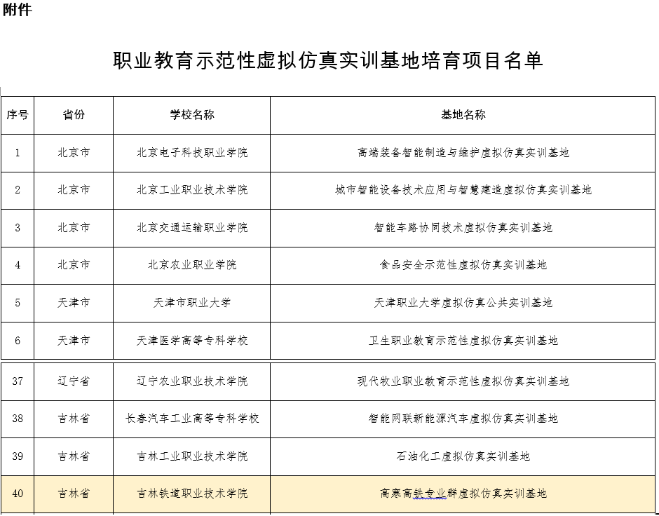 近日,教育部职业与成人教育司发布了《关于公布职业教育示范性虚拟仿真实训基地培育项目名单的通知》(教职成司函〔2021〕35号)。我校提交的“高寒高铁专业群虚拟仿真实训基地”成功入选。