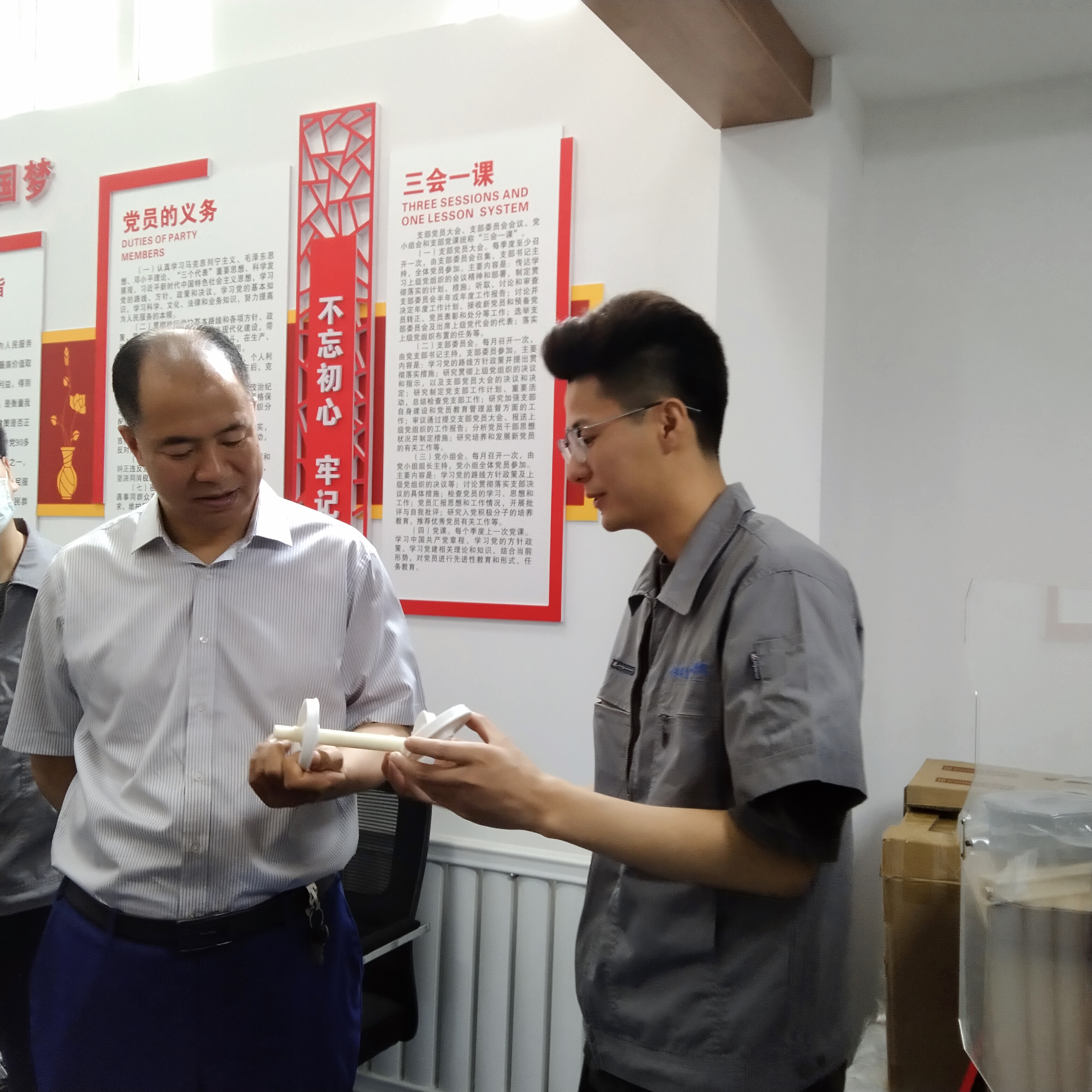 曹炳志又来到一号实训基地102室长白山技能名师工作室,观看了青年教师田丛操作新引进的3D打印机打印动车组部件的过程。曹炳志校长要求学院要进行科学调研,研究规划建设3D打印实训室的可行性。