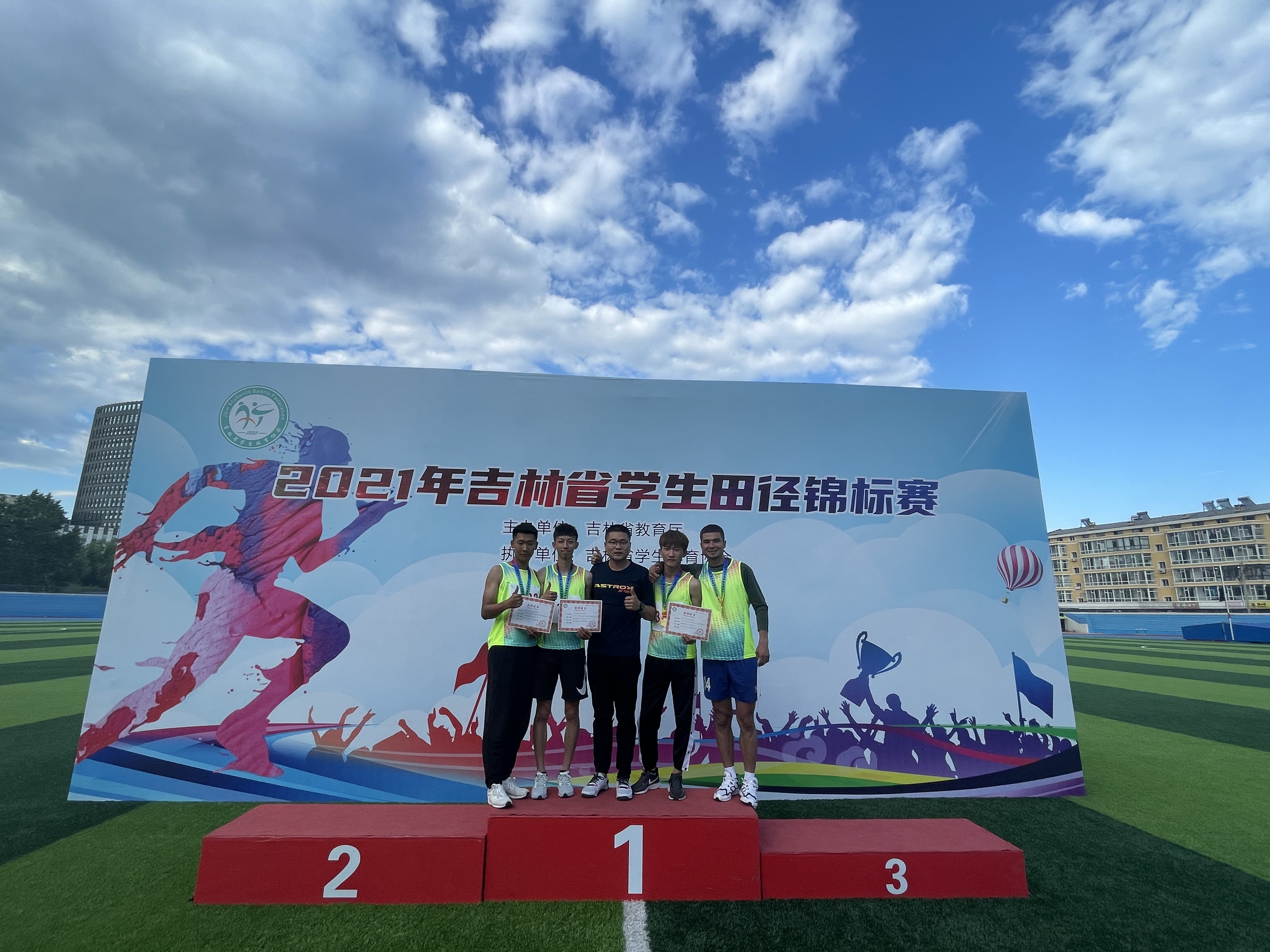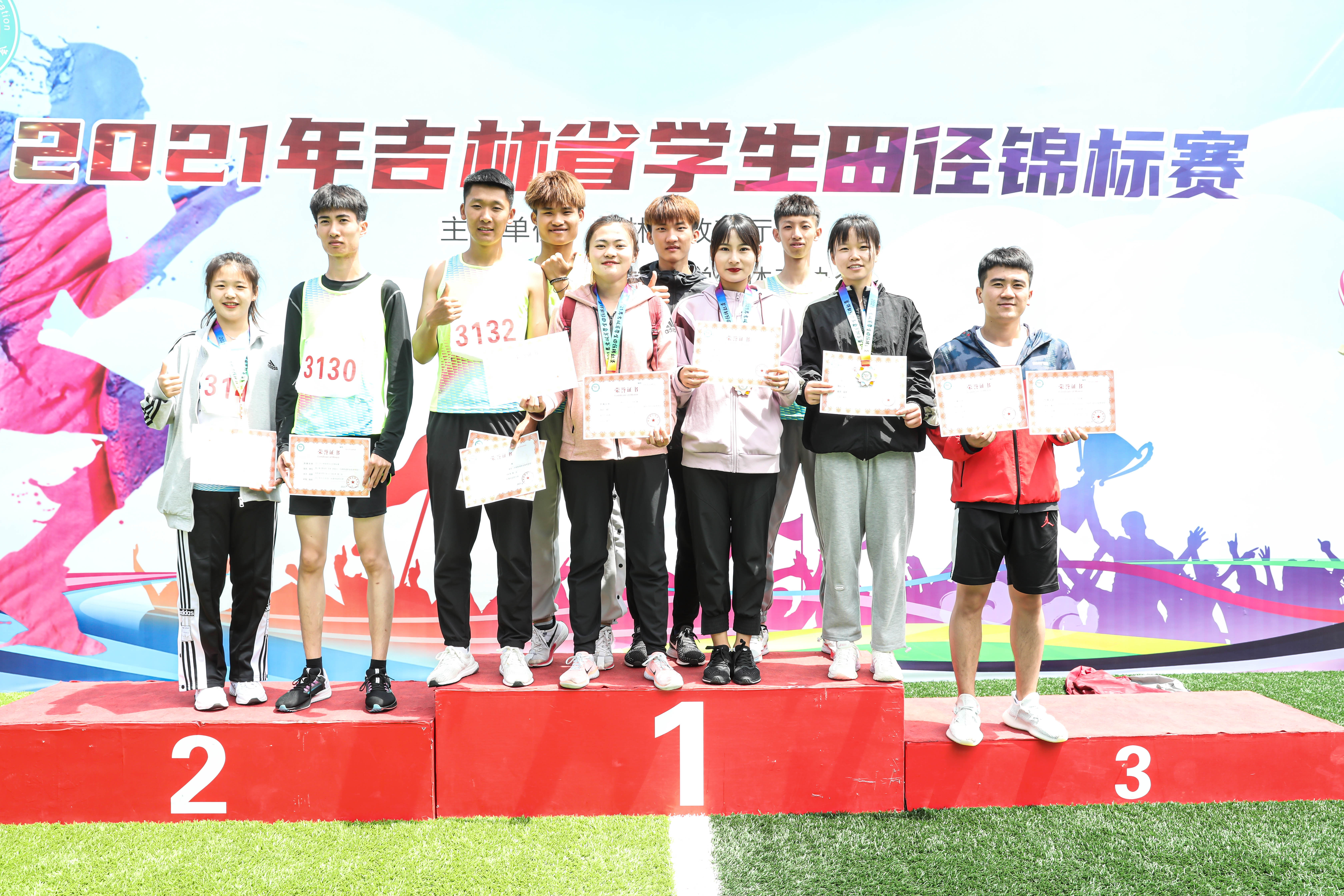 本次比赛是对我校体育教学训练成果的检验,是考察教练员、运动员水平的良好契机,我校派出19名运动员参加了其中的24项比赛,在比赛中运动员们奋勇争先,努力拼搏,夺取男子4*100米接力冠军、男子100米冠军、女子1500米冠军、女子5000米冠军,共计获得一等奖4项,二等奖7项,三等奖12项,其中男子4*100米接力、女子1500米两个项目打破吉林省学生田径项目最高纪录。