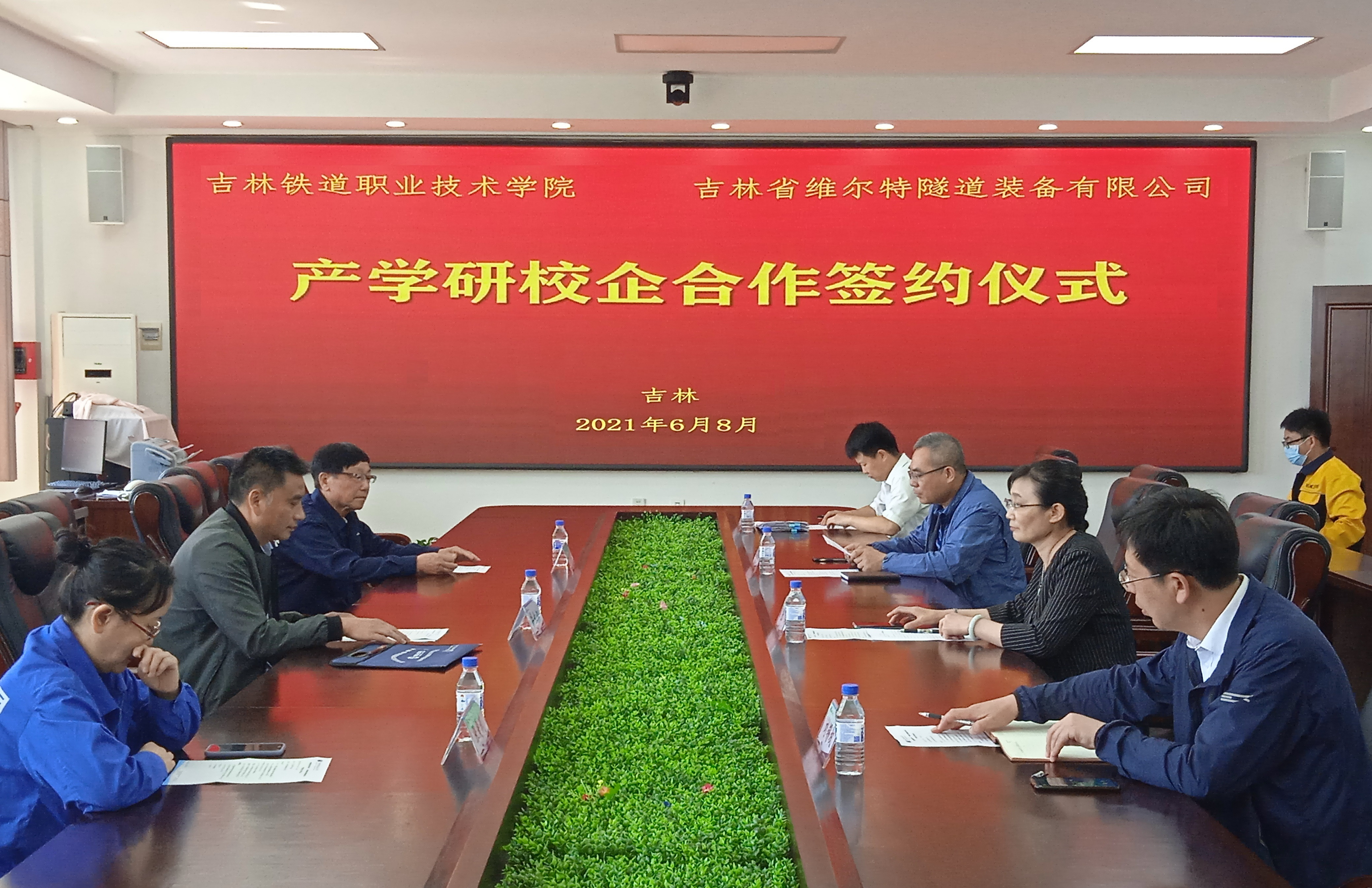 2021年6月8日,我校与吉林省维尔特隧道装备有限公司在行政办公楼第二会议室举办产学研校企合作签约仪式,学校副校长张辉、机械工程学院党总支书记刘锡权、产教融合中心副主任金鹏涛,吉林省维尔特隧道装备有限公司副总经理兼法人华长江、技术顾问于永生、物控部部长兼吉林省盾构与隧道刀具技术重点实验室主任张爱武参加签约仪式,仪式由机械工程学院院长孙志刚主持。