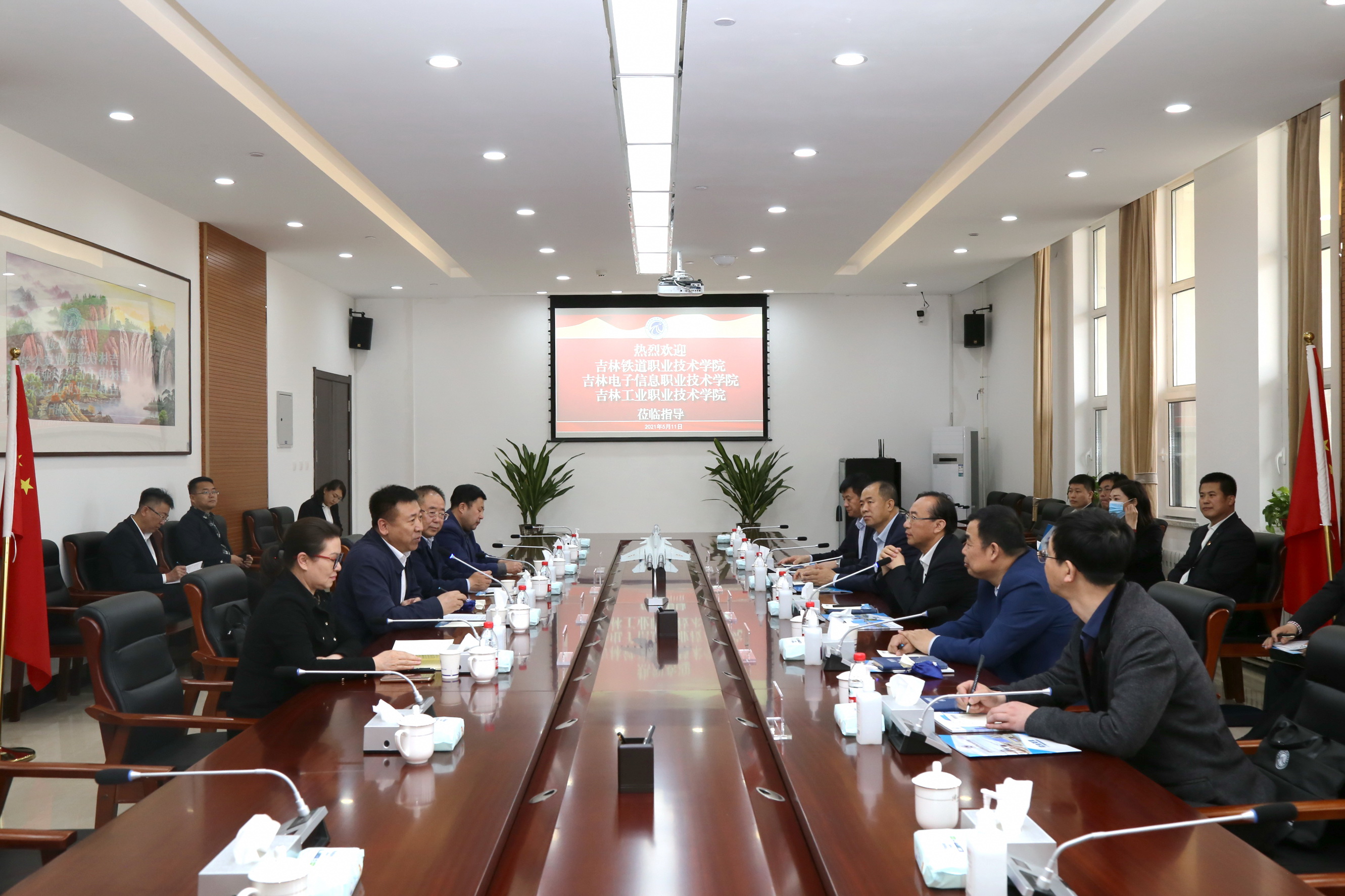 为深入贯彻落实省委书记景俊海在“创业有你 ‘就’在吉林”助力新时代吉林振兴发展宣讲报告会上的讲话精神和市委书记贺志亮5月8日在“创业有你 ‘就’在吉林”助力新时代吉林振兴发展集中宣传推介活动报告会上的讲话精神,进一步增进校校合作、校地合作。5月11日,学校党委书记宋春辉、校长曹炳志在相关职能部门负责人的陪同下前往吉林通用航空职业技术学院进行调研,吉林工业职业技术学院、吉林电子信息职业技术学院党政领导一同参加调研。吉林市教育局局长杨伟光、副局长张枢成、职业与成人教育处处长李智,吉林通用航空职业技术学院筹备组组长陈沫等领导热情接待了调研组一行。