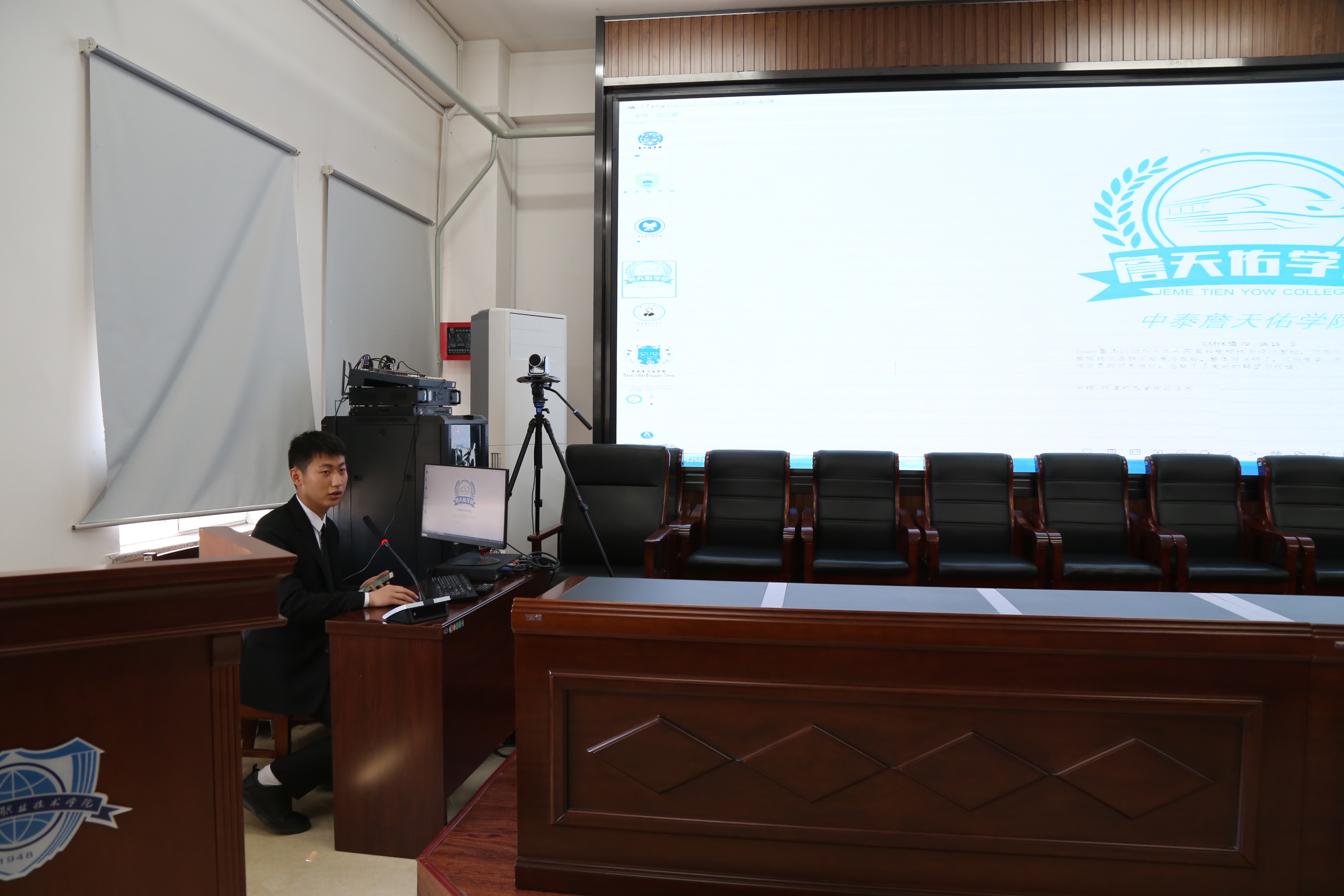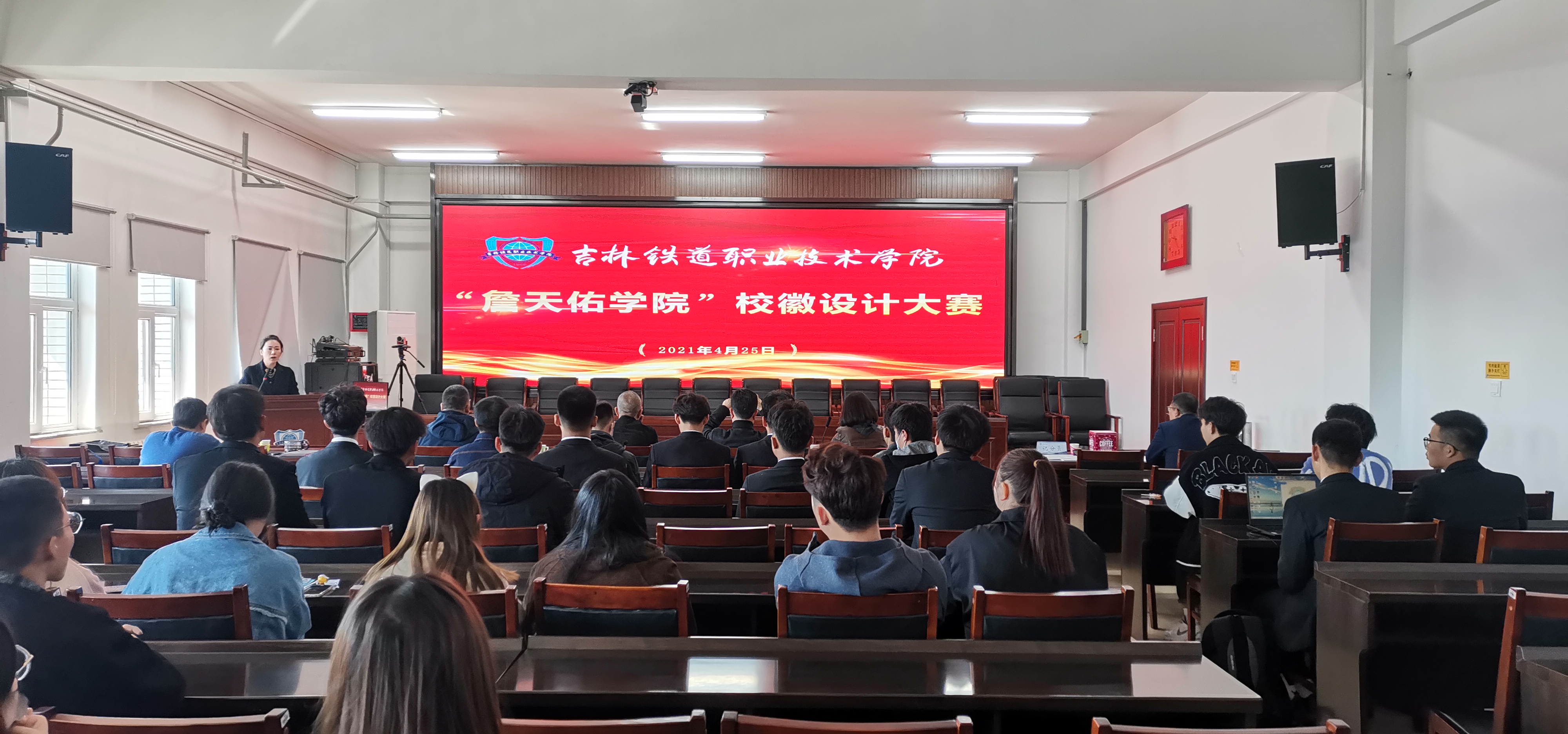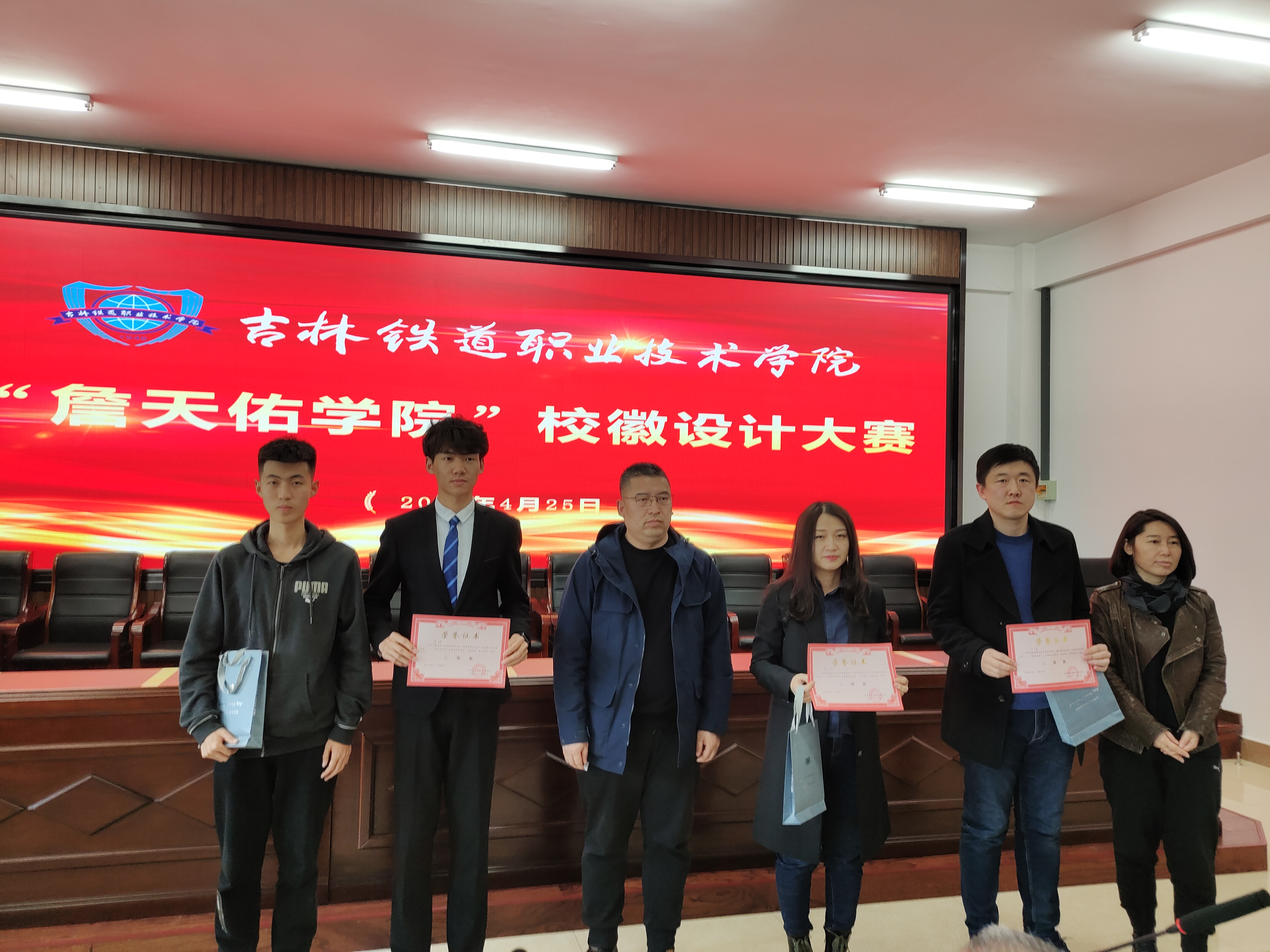 为弘扬工匠精神,展现国际化办学形象,4月25日,学校在行政楼5楼会议室举办“詹天佑学院”校徽设计大赛。大赛邀请北华大学美术学院院长侯敏枫、吉林铁道勘察设计院有限公司建筑所所长王小兵、北华大学美术学院教授岳昆、东北电力大学艺术学院教授闫伟进行现场指导并担任评委。比赛由国际交流中心主任盛莉主持。