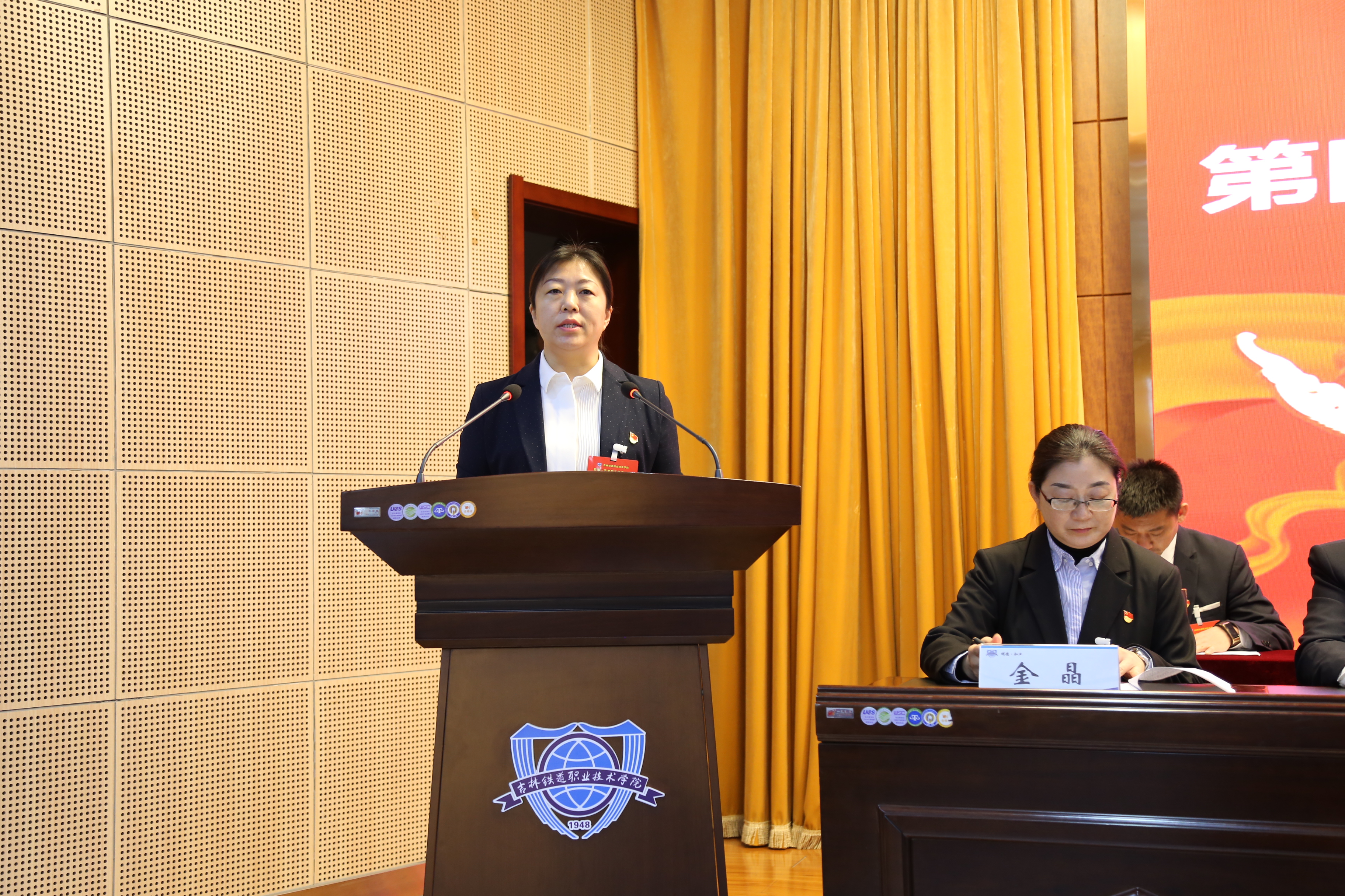 4月22日下午,学校第四届教职工代表大会暨工会会员代表大会第一次会议在圆满完成各项议程后在图书馆报告厅胜利闭幕。学校党委副书记、校长曹炳志,党委副书记徐彤宝,纪委书记、监委主任苏春年,副校长李欣,副校长张辉以及本次大会的执行主席出席会议并在主席台就坐。正式代表、列席代表共126名同志参加了会议。闭幕式由苏春年主持。