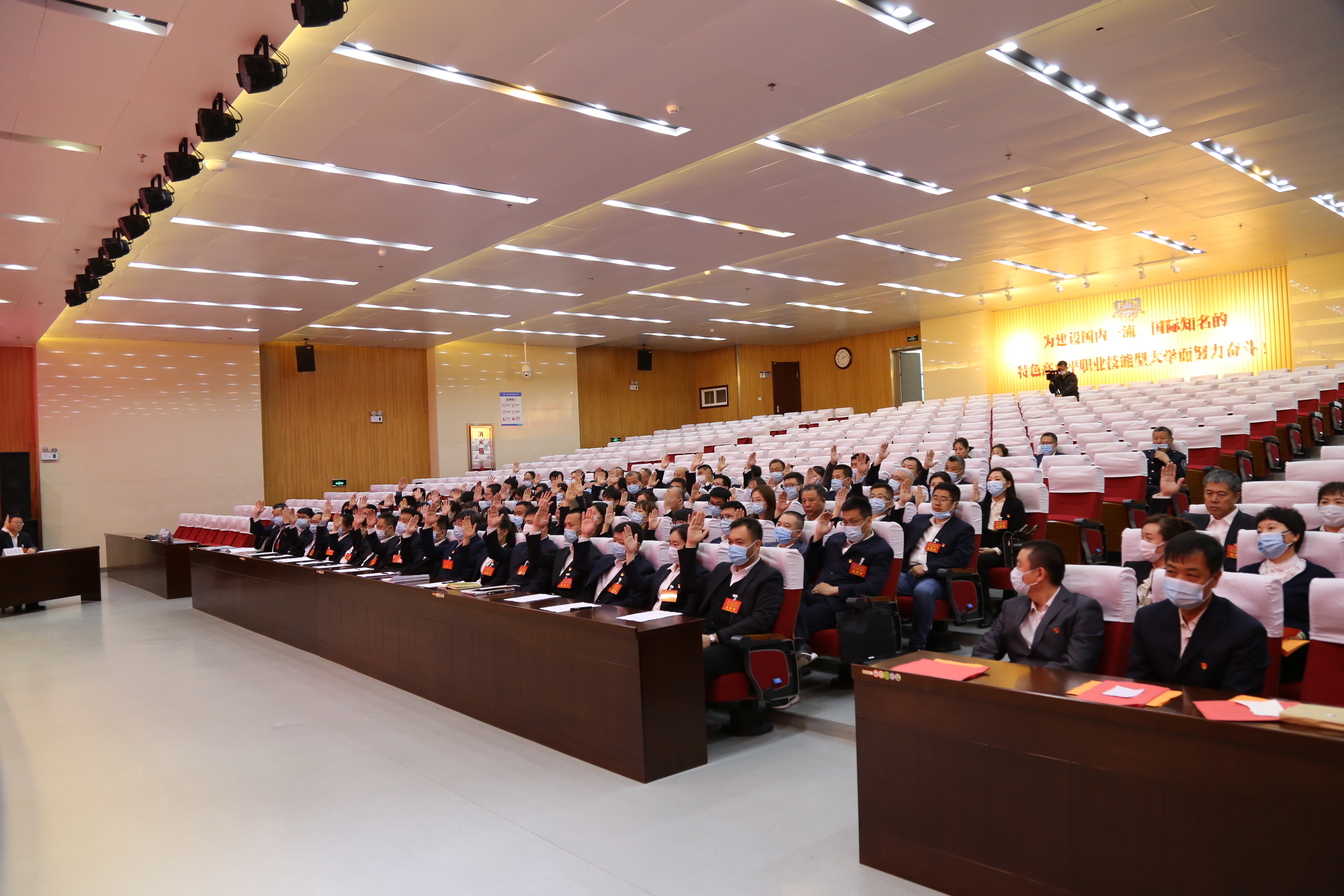 蓝图已绘就,征帆正远航!学校“双代会”已经绘就出学校新时代新阶段的发展蓝图。全校教职员工必将以知重负重、义不容辞的政治担当,以奋发有为、昂扬向上的精神状态,用锐意进取、攻坚克难的实际行动,奋力开启建设“中国特色、世界水平的职业技能型大学”的新征程,为实现学校的宏伟目标而努力奋斗,以优异的成绩向党的百年华诞献礼!