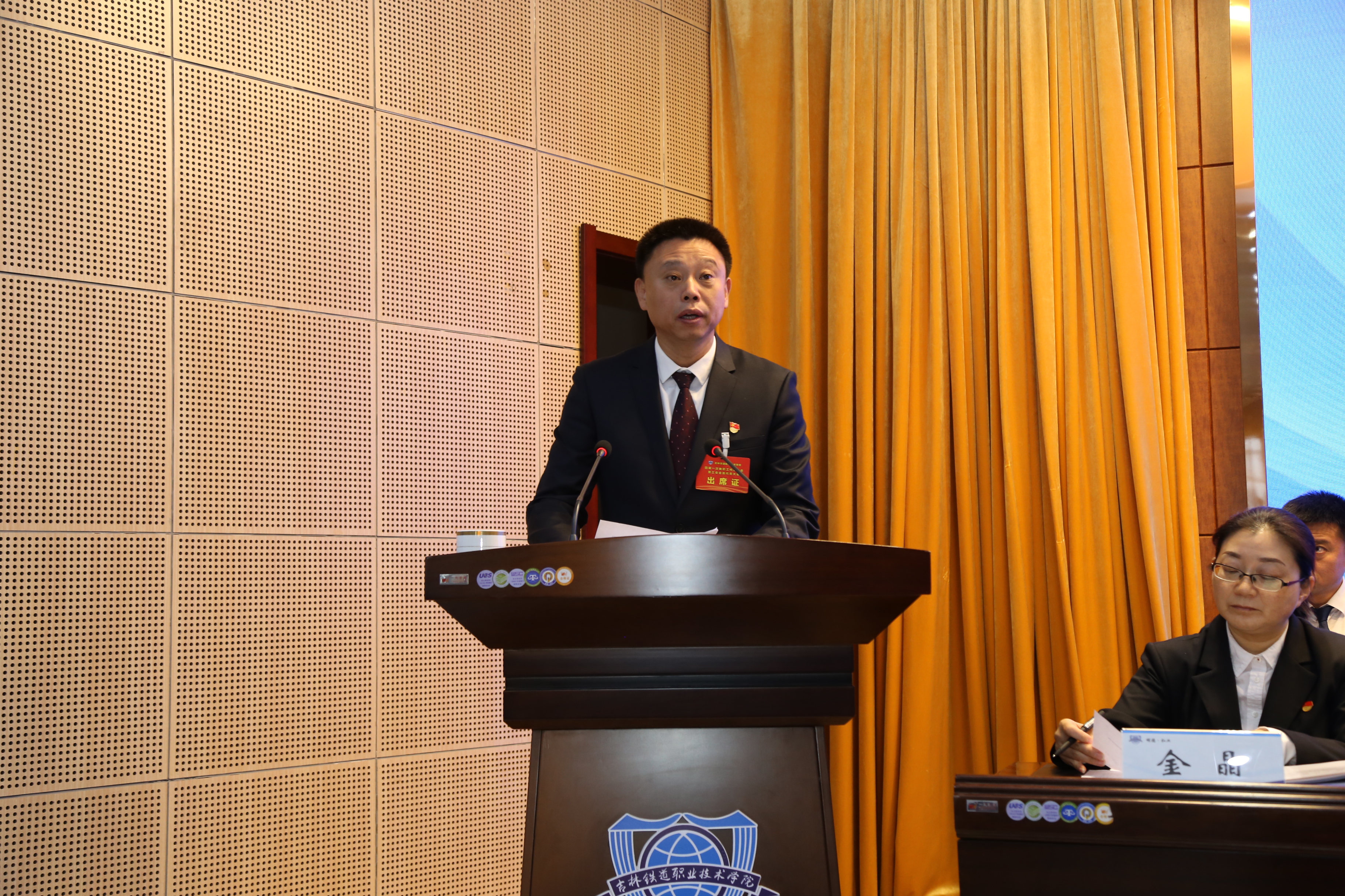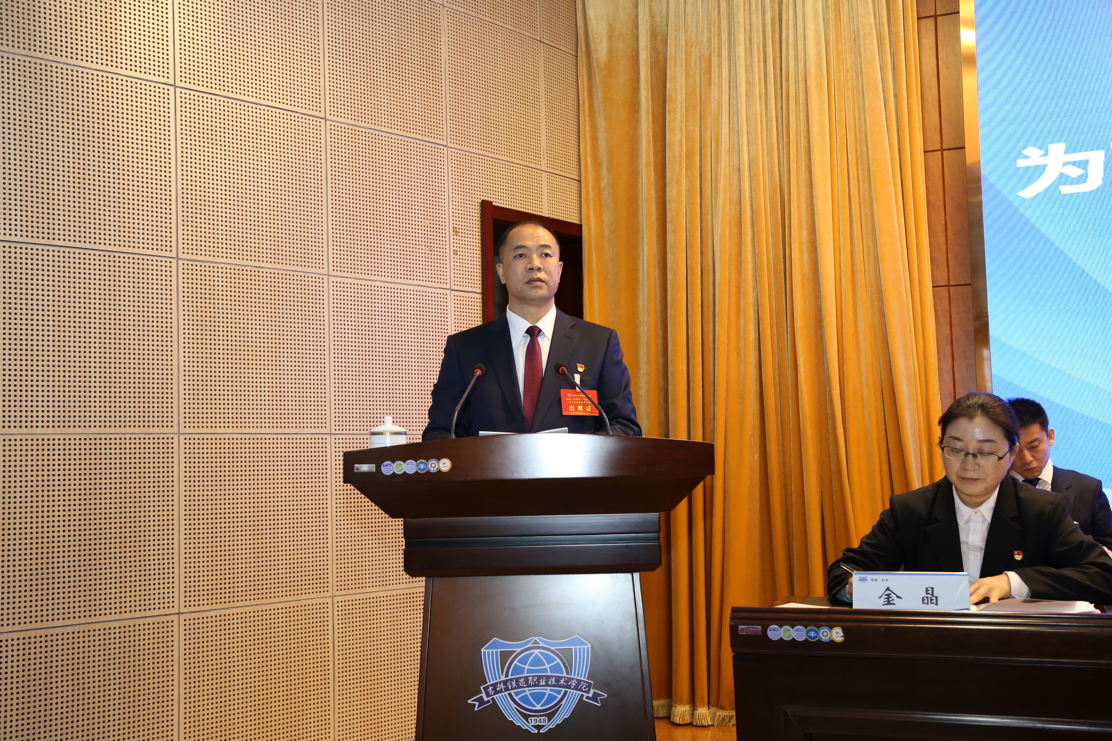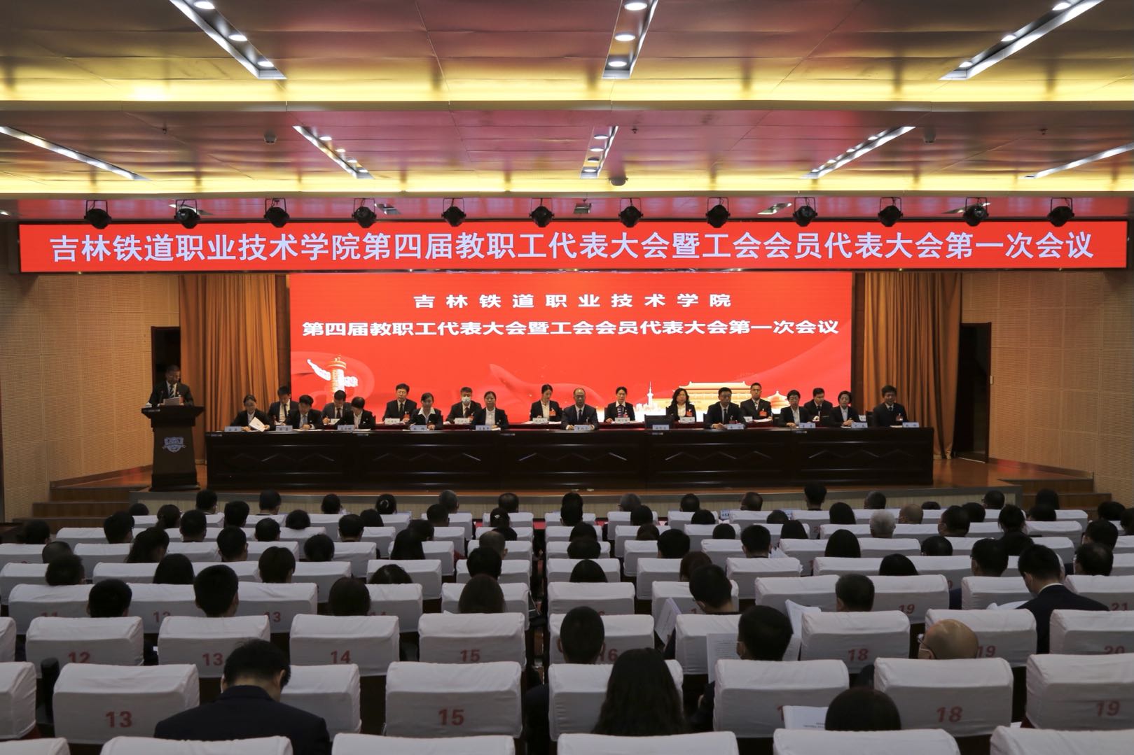 在深入学习贯彻习近平新时代中国特色社会主义思想和党的十九届三中、四中、五中全会精神,落实全国职业教育大会神之际,在全国上下喜迎建党一百周年之时,学校第四届教职工代表大会暨工会会员代表大会第一次会议于4月21日隆重开幕。学校党委副书记、校长曹炳志,党委副书记徐彤宝,纪委书记、监委主任苏春年,副校长李欣,副校长张辉以及本次大会的执行主席出席会议并在主席台就坐。全校正式代表、列席代表、科级干部共193名同志参加了会议。开幕式由徐彤宝主持。