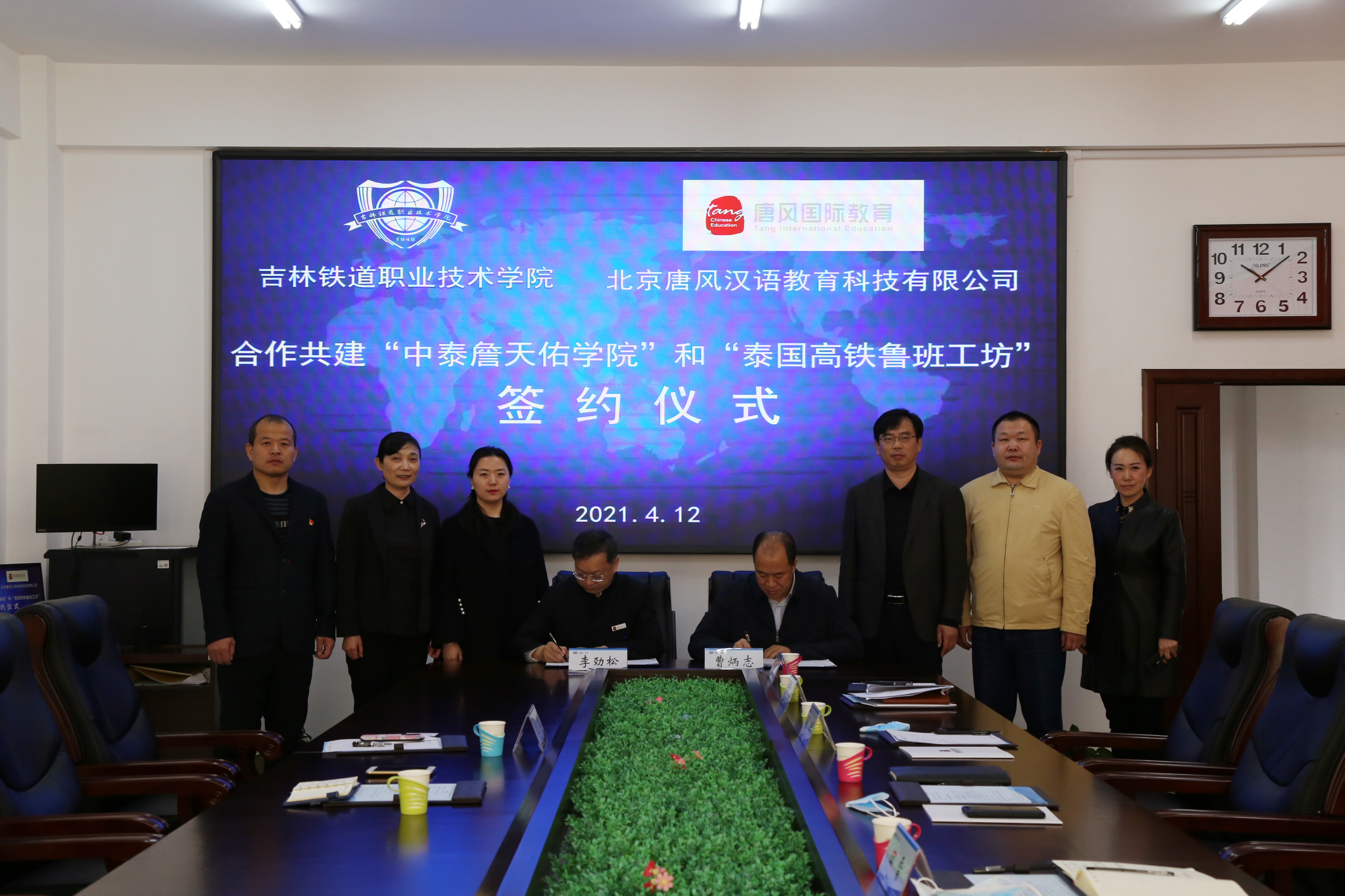 签约仪式上,曹炳志代表学校对北京唐风汉语教育科技有限公司李劲松总裁一行的到来表示热烈欢迎。他指出,共建“中泰詹天佑学院”和“泰国高铁鲁班工坊”是学校贯彻落实《中国教育现代化2035》《职教20条》及吉林省委、省政府关于建设“一带一路”向北开放重要窗口,积极服务高铁走出去战略,推进学校“双高计划”建设的具体举措,希望双方务实推进项目建设,输出吉铁院特色、经验,打造“詹天佑学院”和“高铁鲁班工坊”品牌,为未来向东北亚地区输出职业教育方案打基础、做准备。