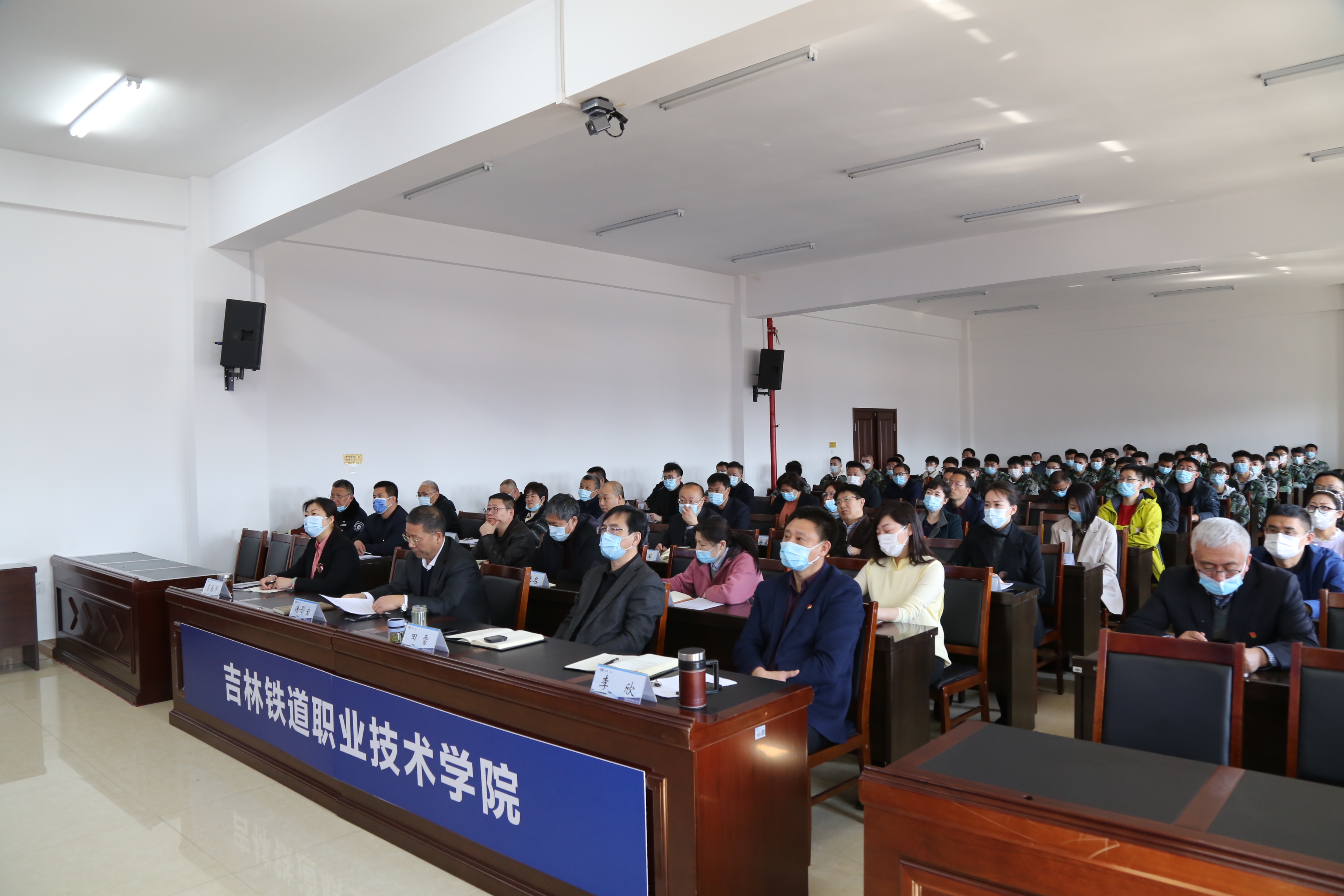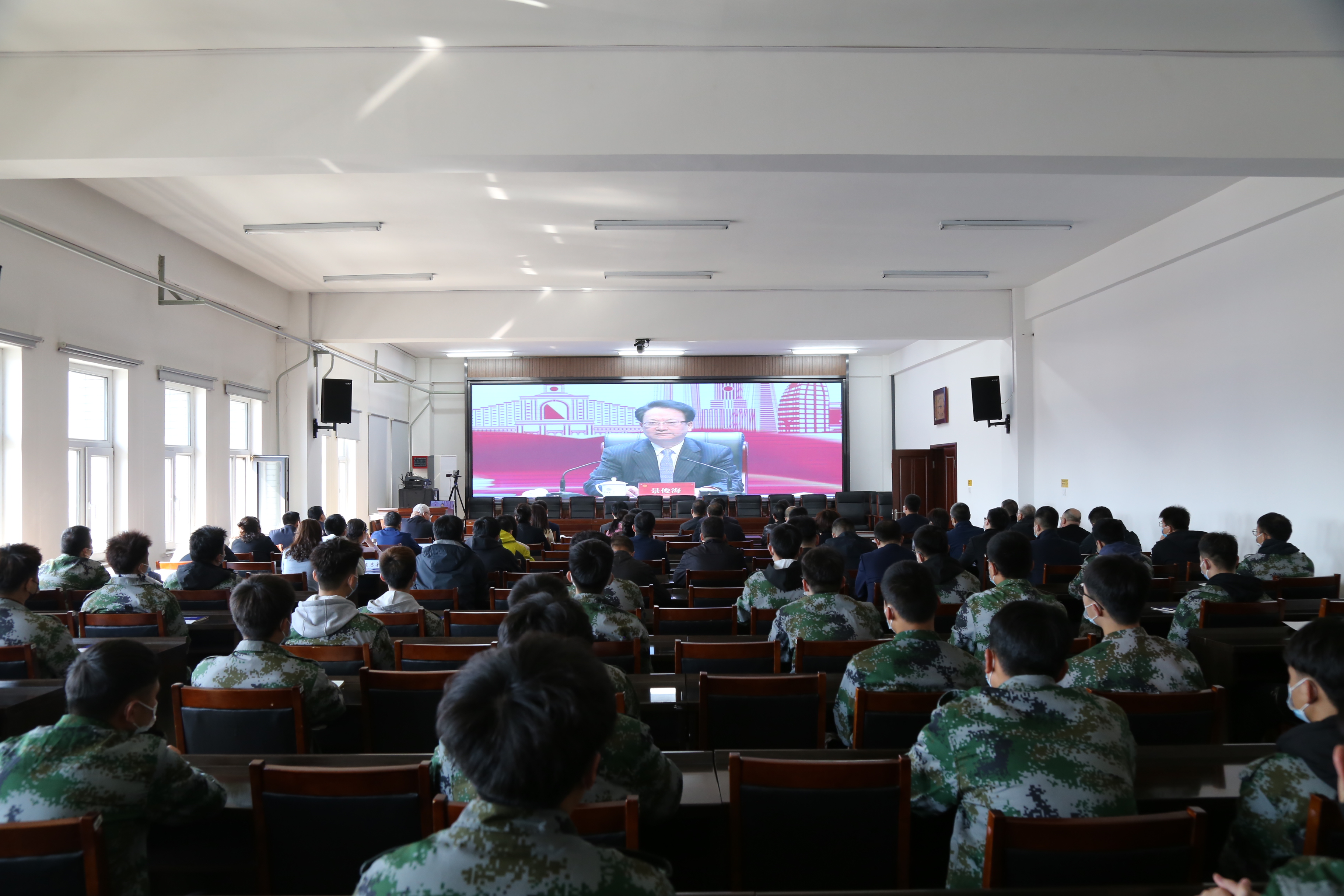 我校共设置主会场1个分会场13个,实现了收看全覆盖。学校领导班子成员、中层干部、就业招生处全体、各院(部)党总支书记、院长、辅导员以及师生代表在主会场收看报告会,2021届毕业生、2022届毕业生在分会场参会,其余师生在手机端观看。
