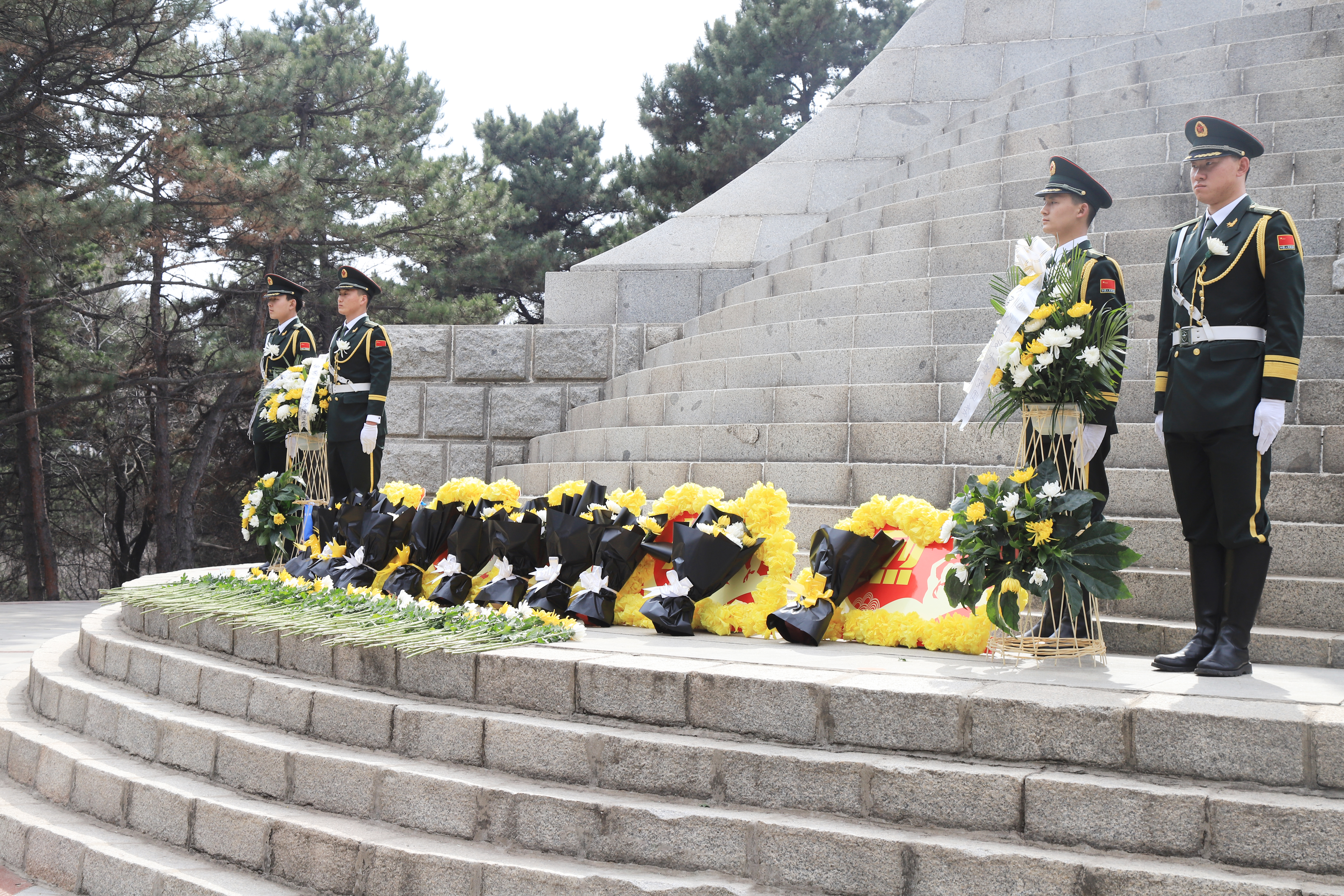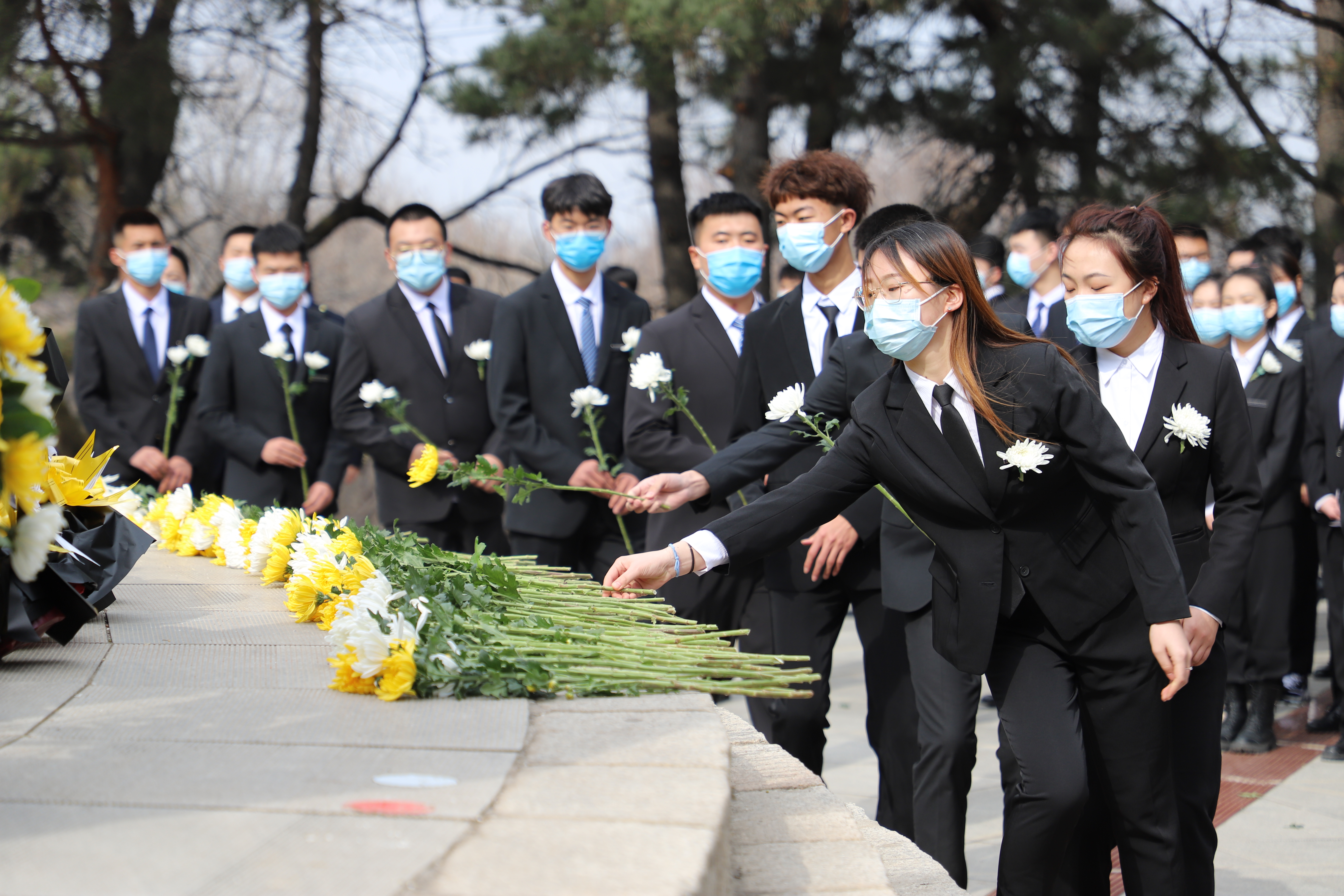 在英雄纪念塔下,全体肃立,默哀一分钟,表达对烈士们的崇敬之情,国旗护卫队4名退伍军人作为代表为烈士们献上花篮。校团委书记刘佳佳在讲话中对青年一代提出了三点希望:一是牢固社会主义核心价值观念,与全国人民一起努力,建设国家,让中华民族以自信自强的姿态屹立于世界民族之林;二是坚定理想信念,做合格的接班人,应该有所思索,有所进取,有所担当;三是爱岗敬业遵守校规校纪,发挥先锋模范带头作用,带动全校师生,向长眠于这片净土的爱国仁人志士学习,不负青春,不负时代。