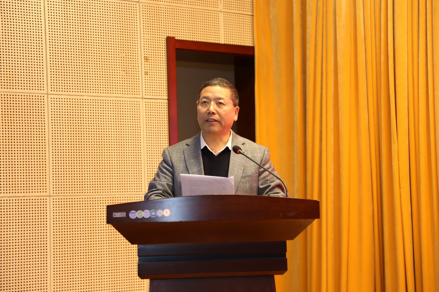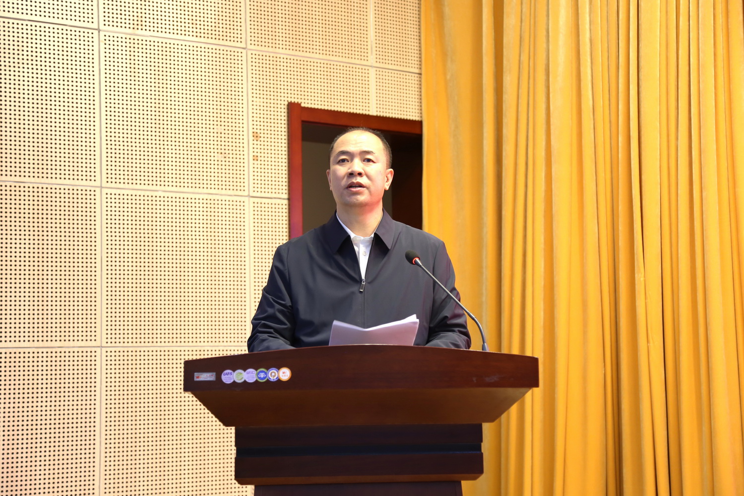 | 3月31日,学校党史学习教育动员大会在图书馆报告厅召开,校长曹炳志作动员讲话。赵丙阳 摄 |