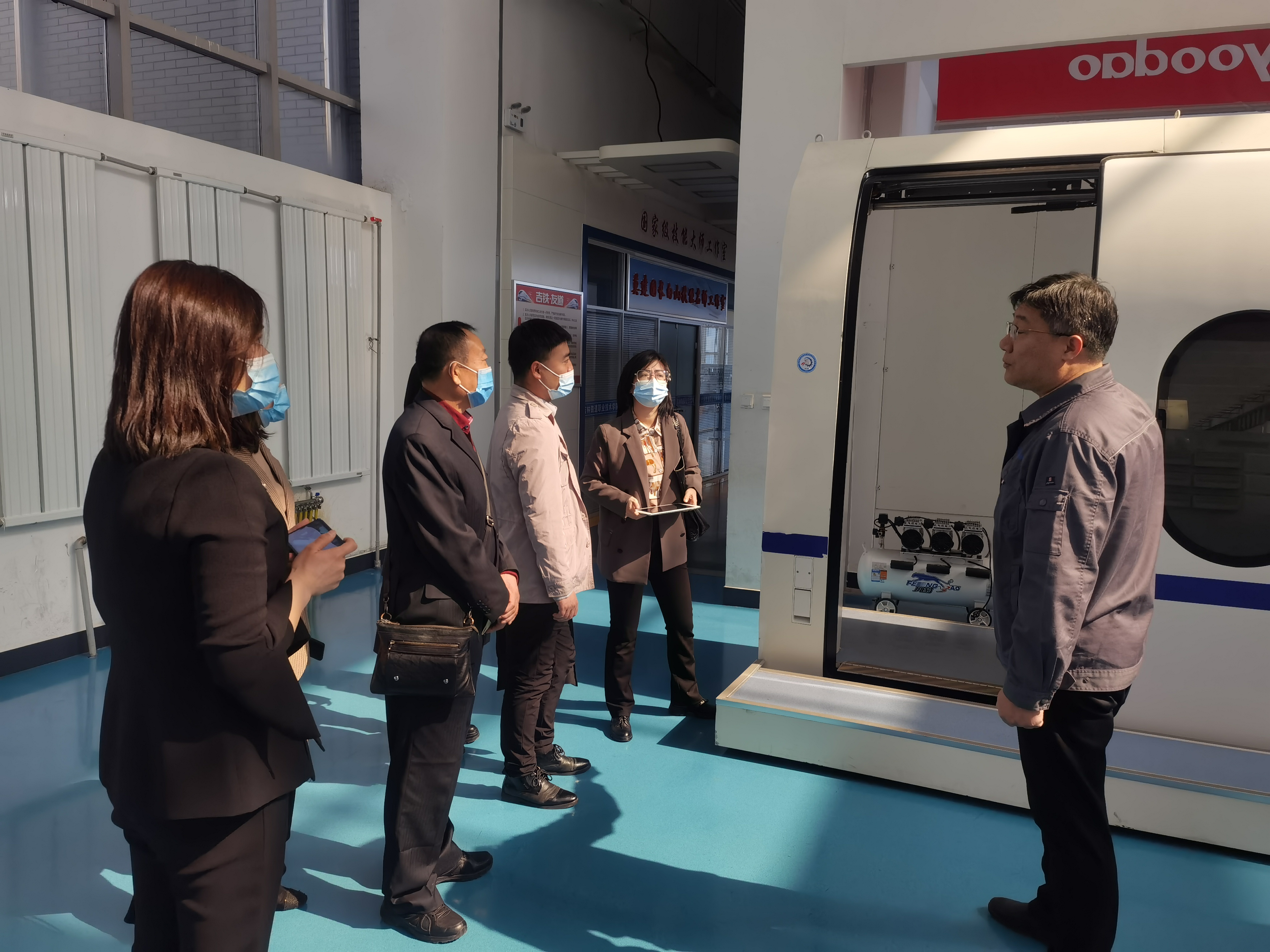 3月25日,梅河口康美职业技术学院图书馆馆长孙继宏,科研处处长江海英,图书馆宋佳、张洪秀,学生工作处赵亮亮、陈佳琪来我校进行调研。在我校学生工作处处长李原福、科研处处长李善峰、图书馆馆长李宪隆及相关部门人员陪同下,调研组一行参观了大学生活动中心、教育教学融合指挥中心、吉林铁道博物馆(科普馆)、信号和车辆实训中心、铁道综合实训基地。