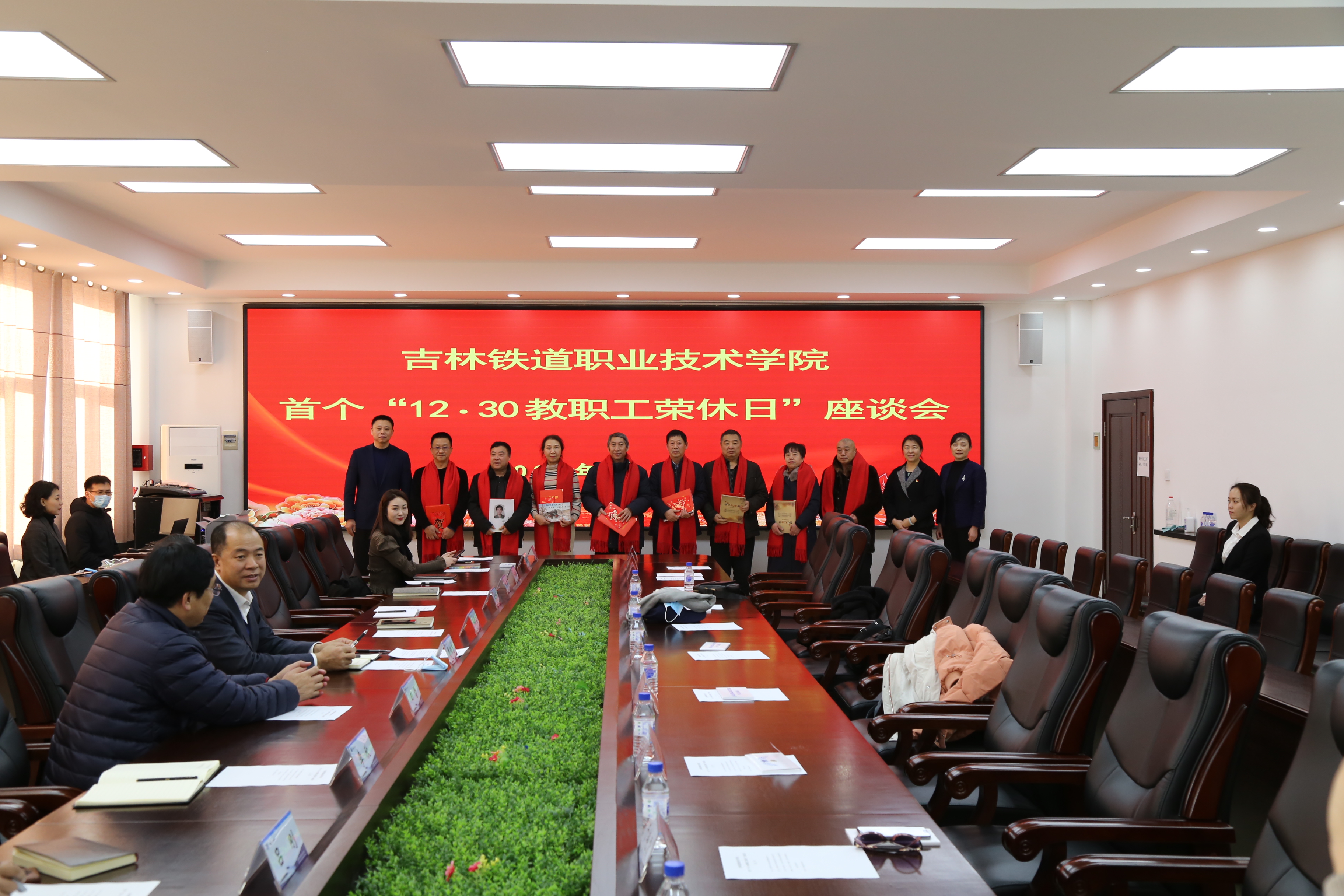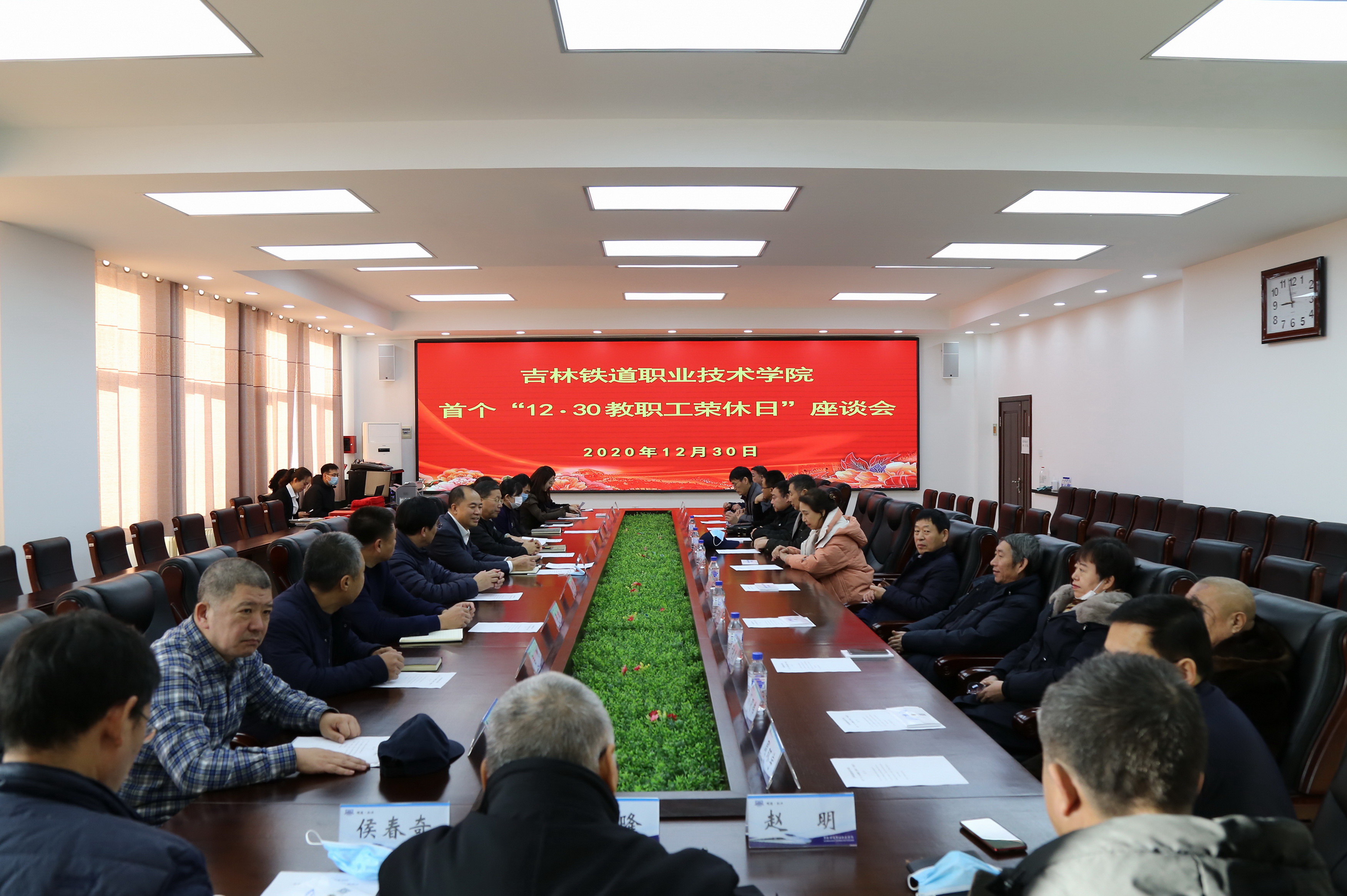 2020年12月30日上午,我校首个“12·30教职工荣休日”座谈会隆重举行。校长曹炳志、党委副书记徐彤宝、副校长田雷、纪委书记苏春年、副校长李欣、副校长张辉出席座谈会。8名2020年度荣休教职工和他们原所在部门总支书记、部门负责人等近30人共同见证了这一隆重的时刻。荣休座谈会由校工会主席李彦主持。