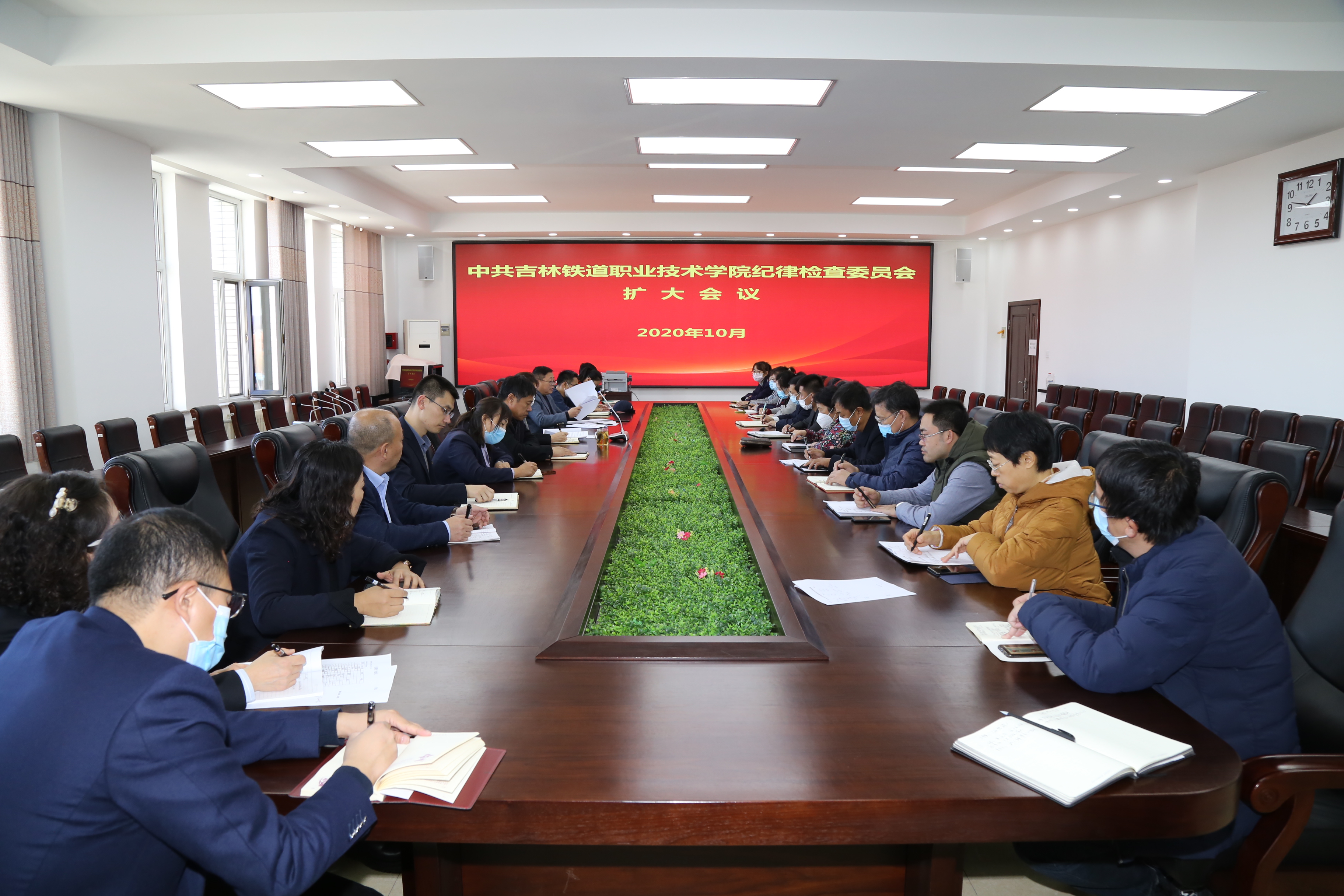 2020年10月27日下午,学校纪委召开扩大会议。学校纪委委员、专职纪检监察干部、各学院党总支副书记、党总支纪检委员、巡察办全体人员等共计25人参加会议,会议由纪委副书记侯占峰同志主持。