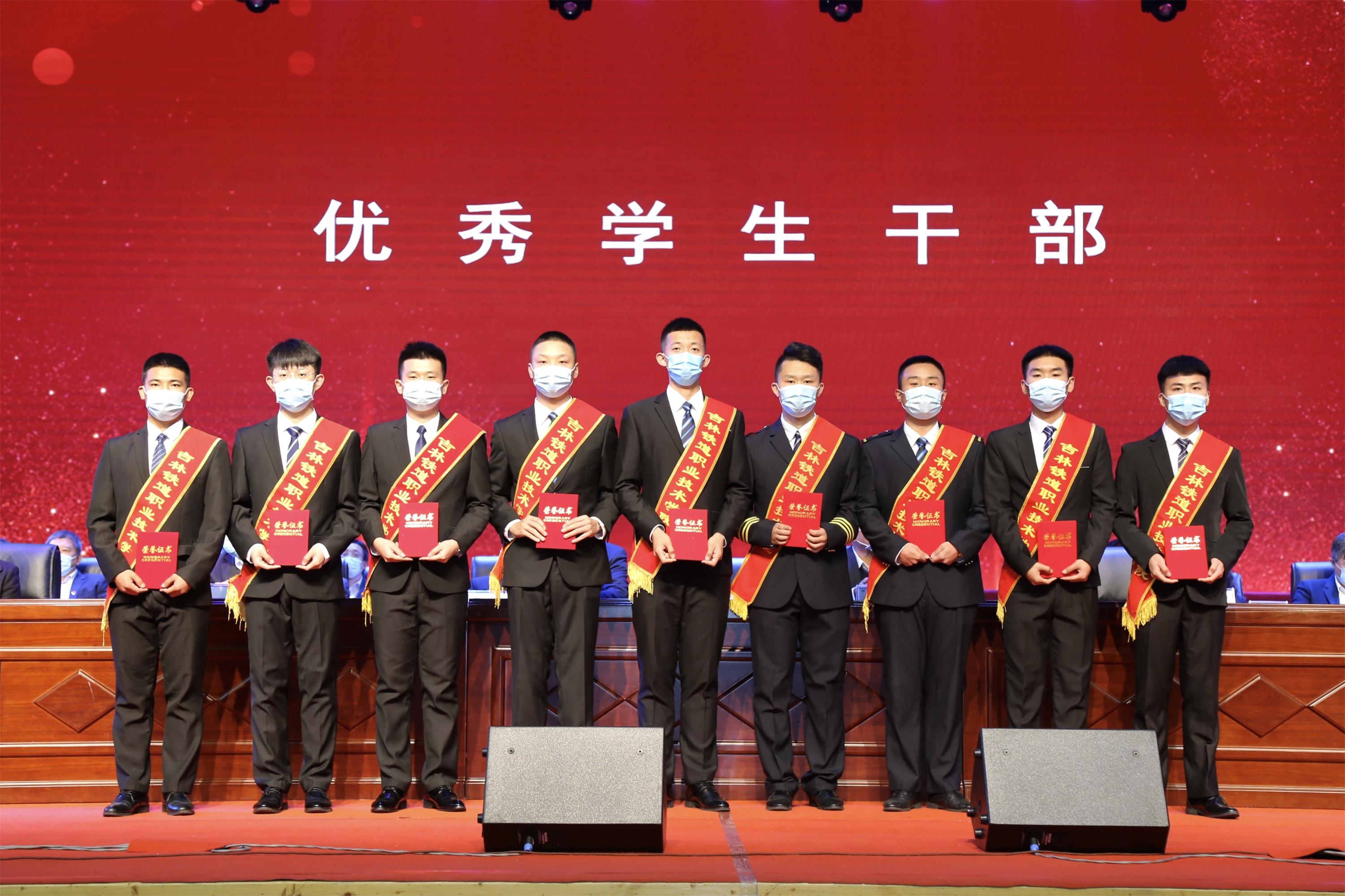 | 获得“优秀学生干部标兵”荣誉称号的学生代表领奖 |